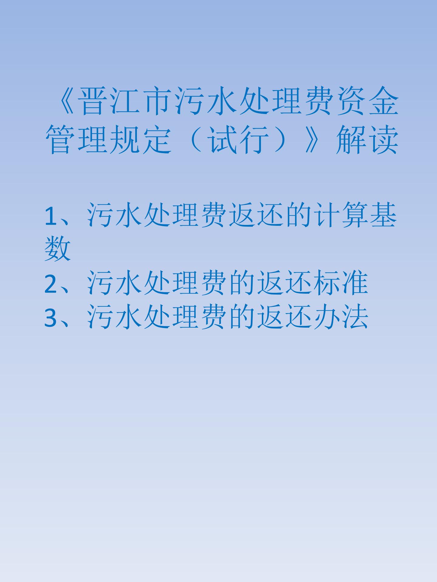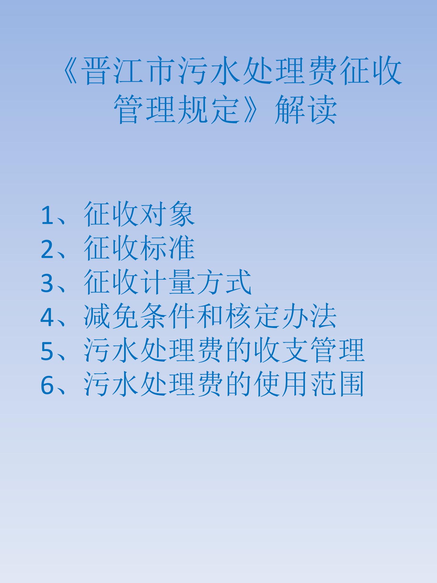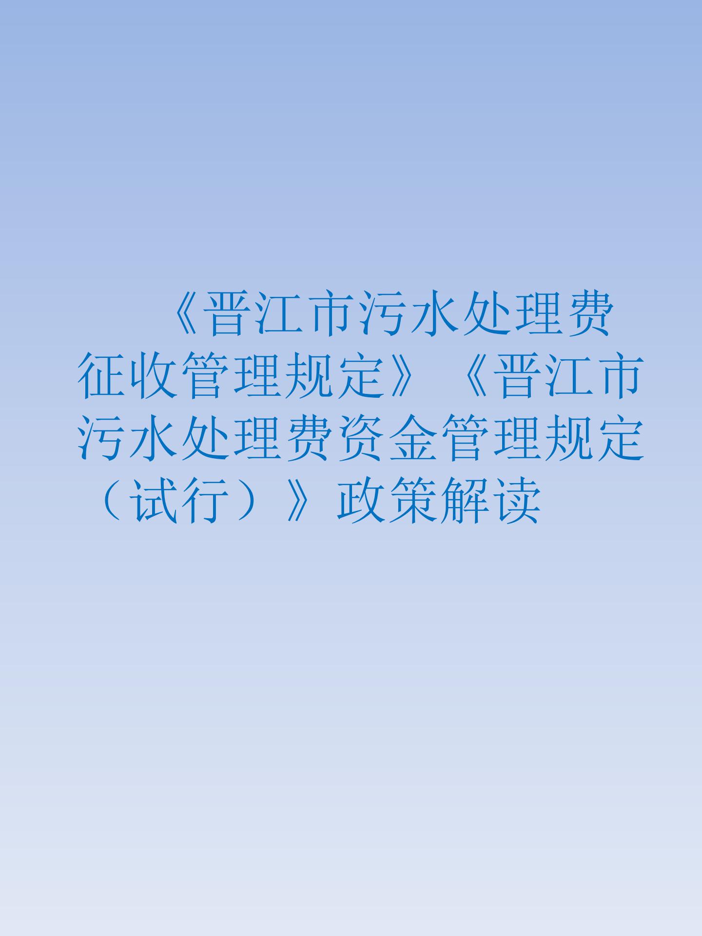 《晋江市污水处理费征收管理规定》《晋江市污水处理费资金管理规定(试行)》政策解读