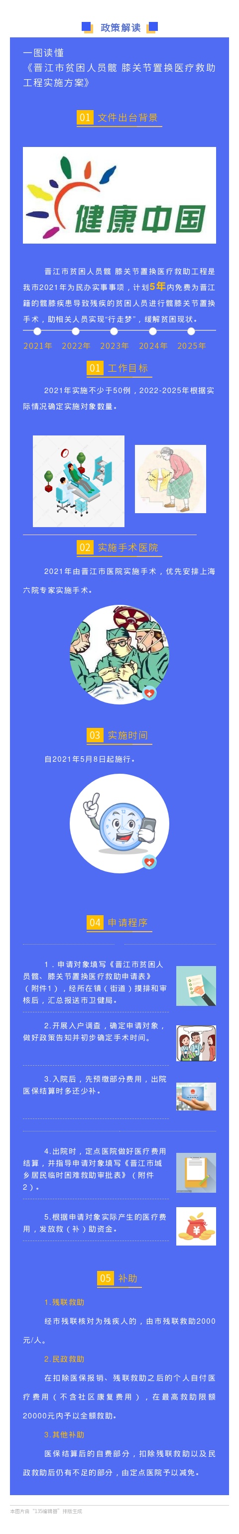 一图读懂《晋江市贫困人员髋 膝关节置换医疗救助工程实施方案》