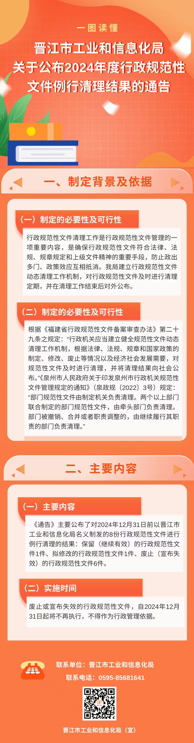 【图解】晋江市工业和信息化局关于公布2024年度行政规范性文件例行清理结果的通告