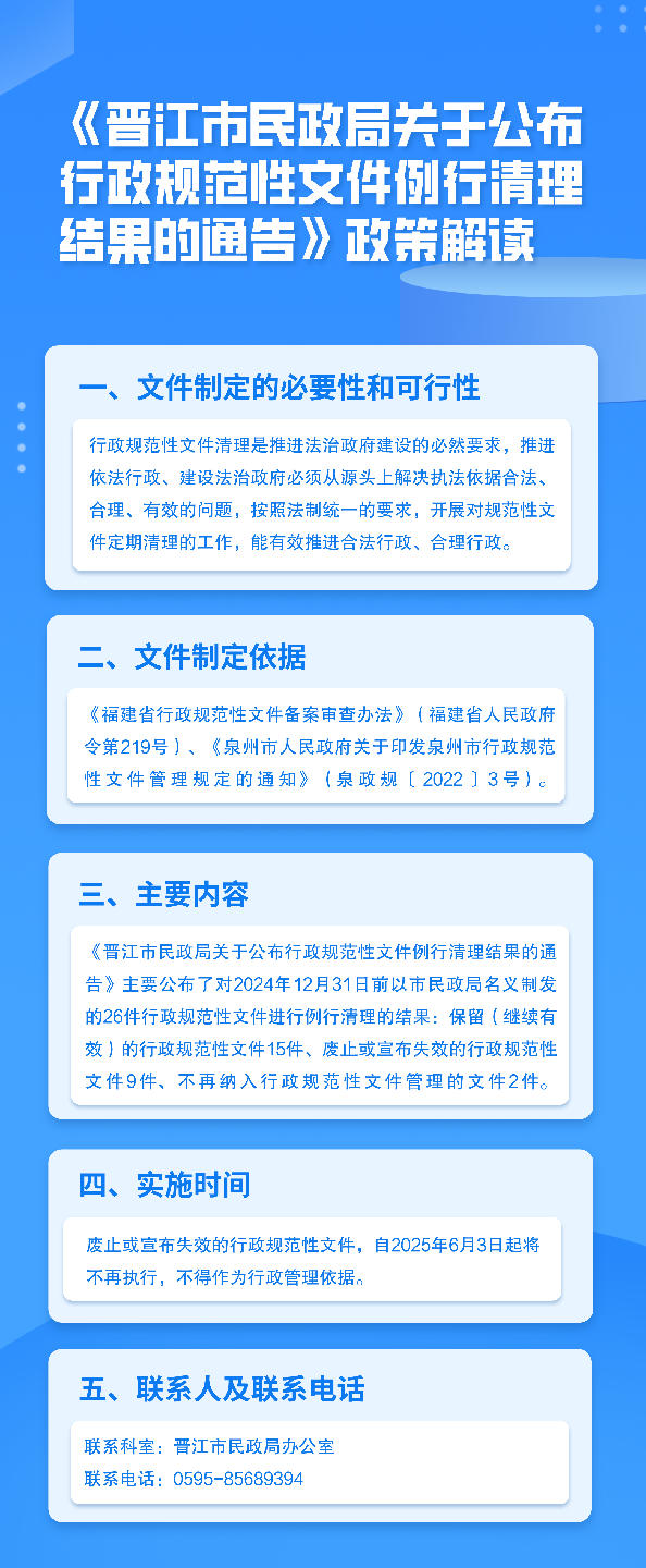 - 《晋江市民政局关于公布行政规范性文件例行清理结果的通告》政策解读2025-06-05