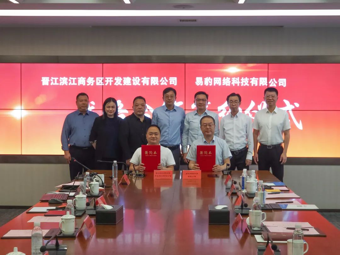 王明元一行实地走访公司,并举行晋江滨江商务区开发建设有限公司与易豹网络科技有限公司战略合作签约仪式,推动易豹网络来晋设立公司事宜。接下来,易豹公司将以晋江市为核心,搭建晋江市国际贸易数字化综合平台,逐步复制推广使用易豹跨境交易撮合系统、智能关务系统、电子订舱平台、智慧拖车平台等平台功能,构建辐射厦漳泉、覆盖福建省乃至海峡西岸经济区的百亿级国际贸易数字化产业互联网平台。