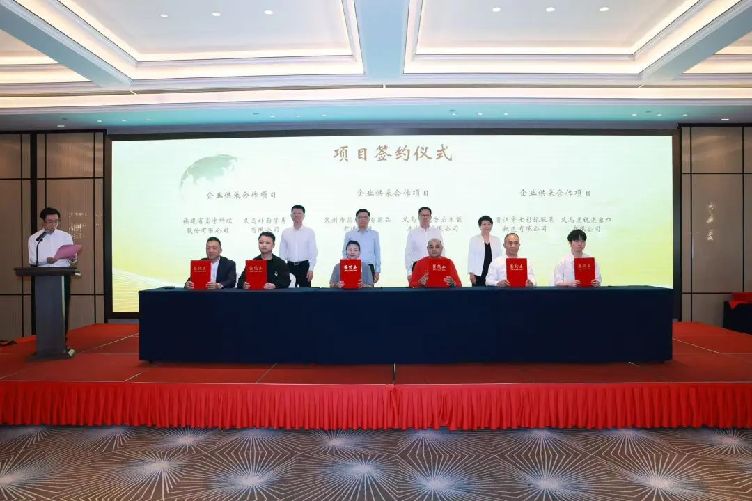 4月25日,“晋江造 义乌卖”义乌晋江优品选品中心启动暨项目签约仪式在义乌举行。浙江省金华市副市长、义乌市市长温建飞,晋江市市长王明元,晋江市政协主席黄天凯,义乌市委常委、常务副市长龚淑娟,晋江市副市长陈英煌参加活动。