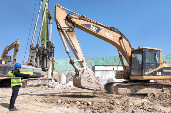 走进晋江未来产业加速器项目(一期)项目工地,多台打桩机、挖掘机等大型机械正在繁忙作业,现场一派片热火朝天。工人们分组作业,全力推进桩基工程和土方工程的施工。