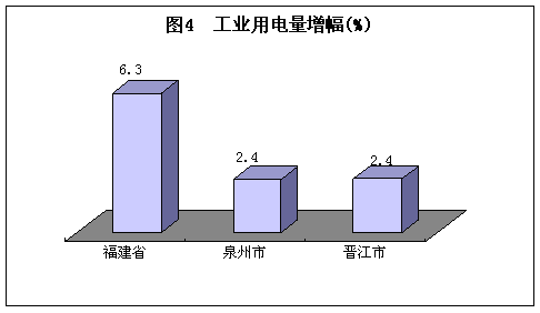 晋江市全部工业总产值增长13.1%,较上年同期下降7.7个百分点;其中,规模以上工业产值(2000万元及以上)增长13.4%,较上年同期下降7.6个百分点。从工业用电量看,增幅为2.4%,低于全省3.9个百分点,与泉州持平。比较结果表明,晋江市工业虽然保持平稳发展,但增长势头有所放缓。