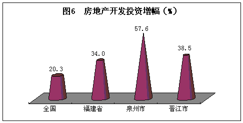 晋江市城市更新步伐加快,也带动了房地产投资的快速增长。全年,晋江市房地产开发投资增长38.5%,分别高于全国、全省18.2、4.5个百分点,但低于泉州市19.1个百分点。