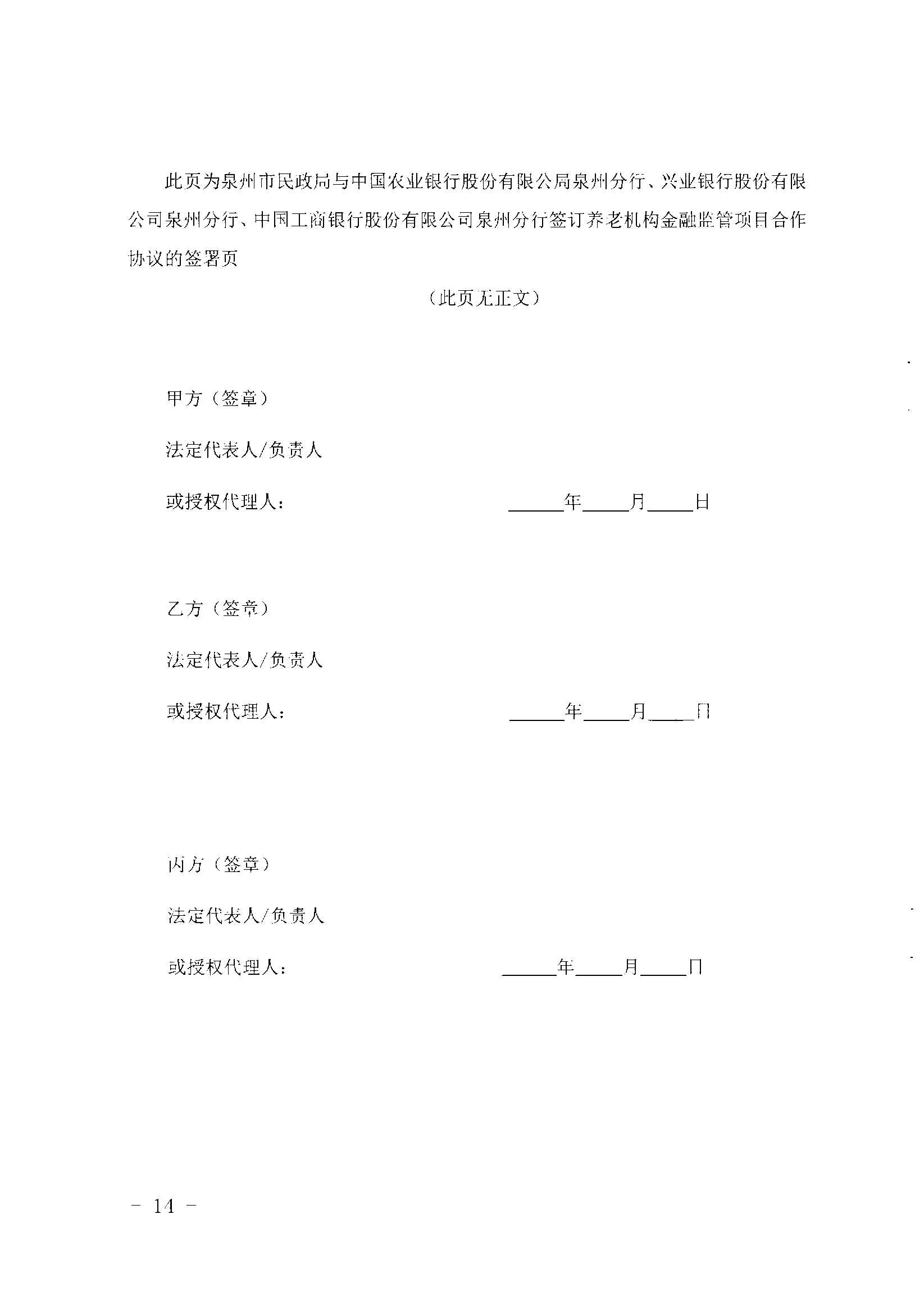 各养老服务机构应在2月28日前选择存管银行,并与其签订预收费监管服务协议;各镇(街道)社会事务办要切实履行属地管理责任,督促辖区内所有养老服务机构严格按照本通知要求,在规定时限内完成存管银行选择及预收费监管服务协议签订工作,并于3月2日前将养老机构预收费签约情况上报市民政局养老科;同时做好日常监管工作,定期排查辖区内养老机构预收费行为,及时发现并督促整改苗头性、倾向性问题,全力防范预收费相关风险,保障老年人合法权益。