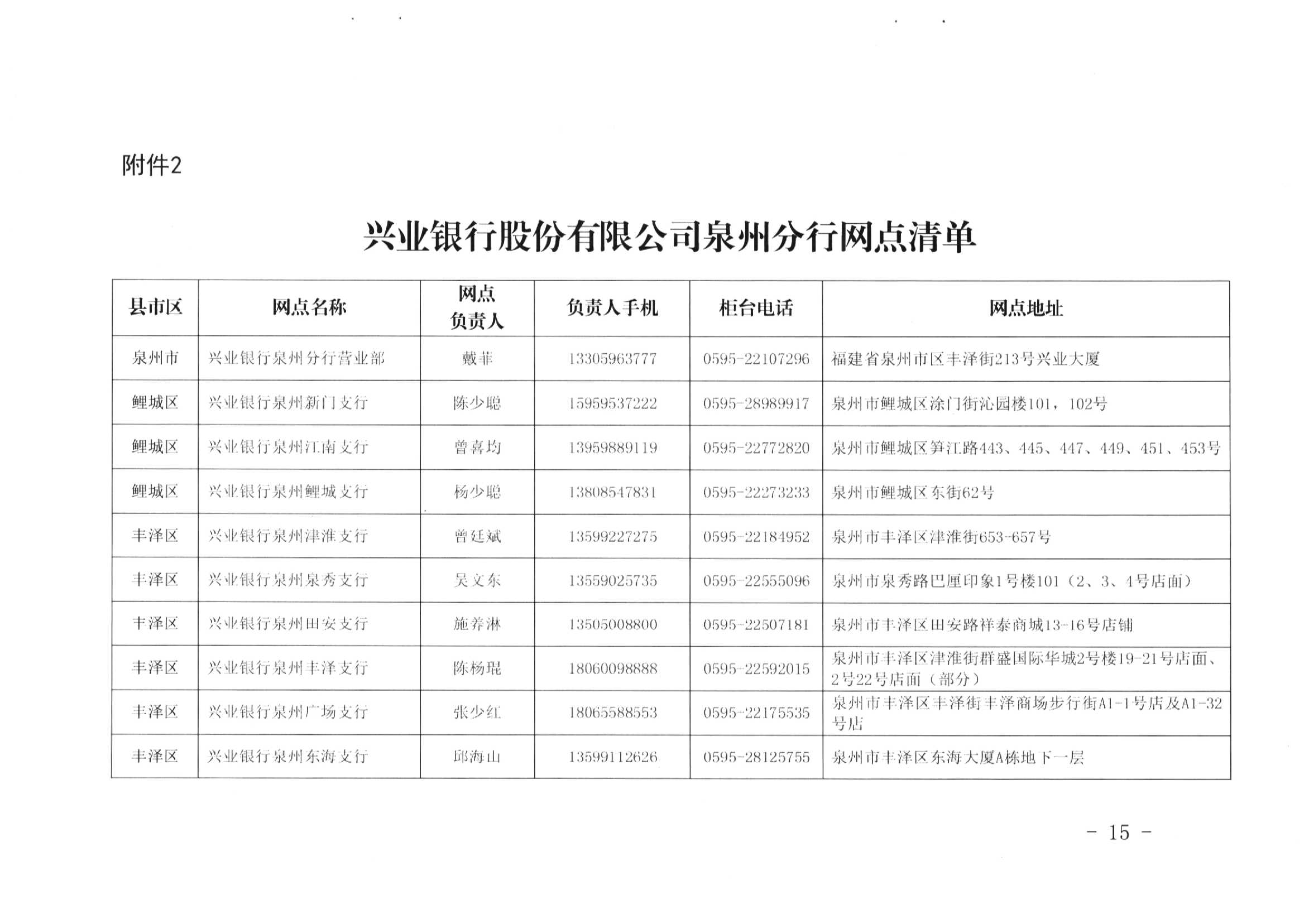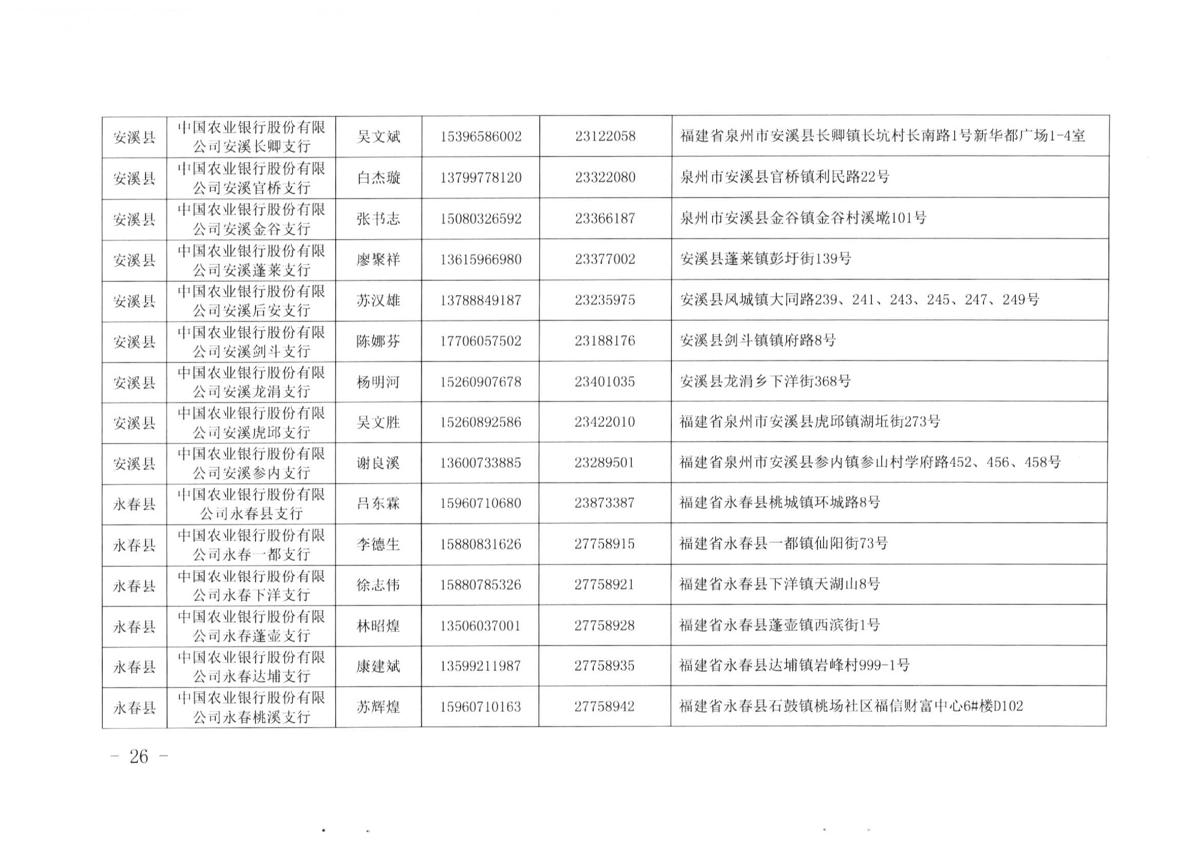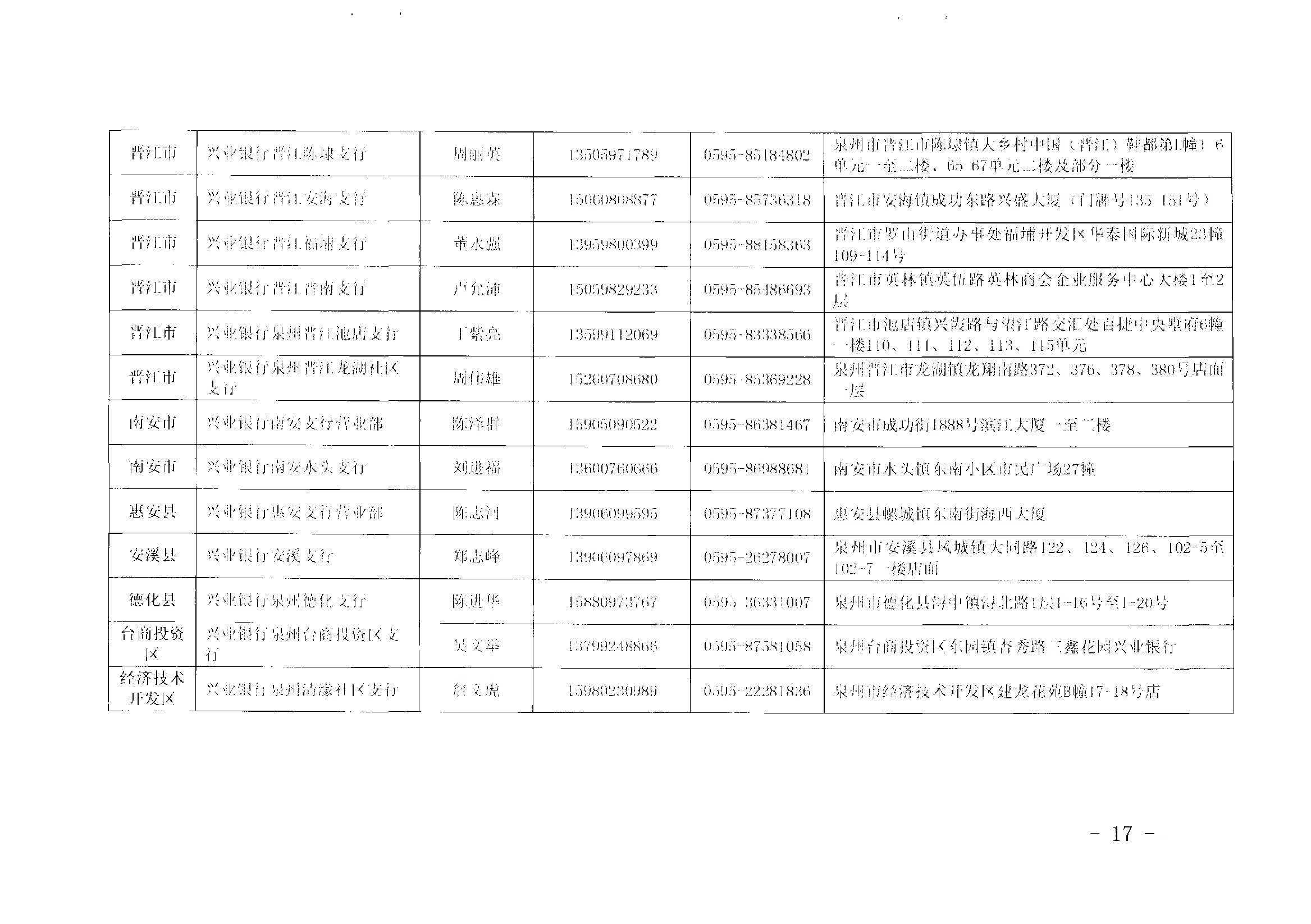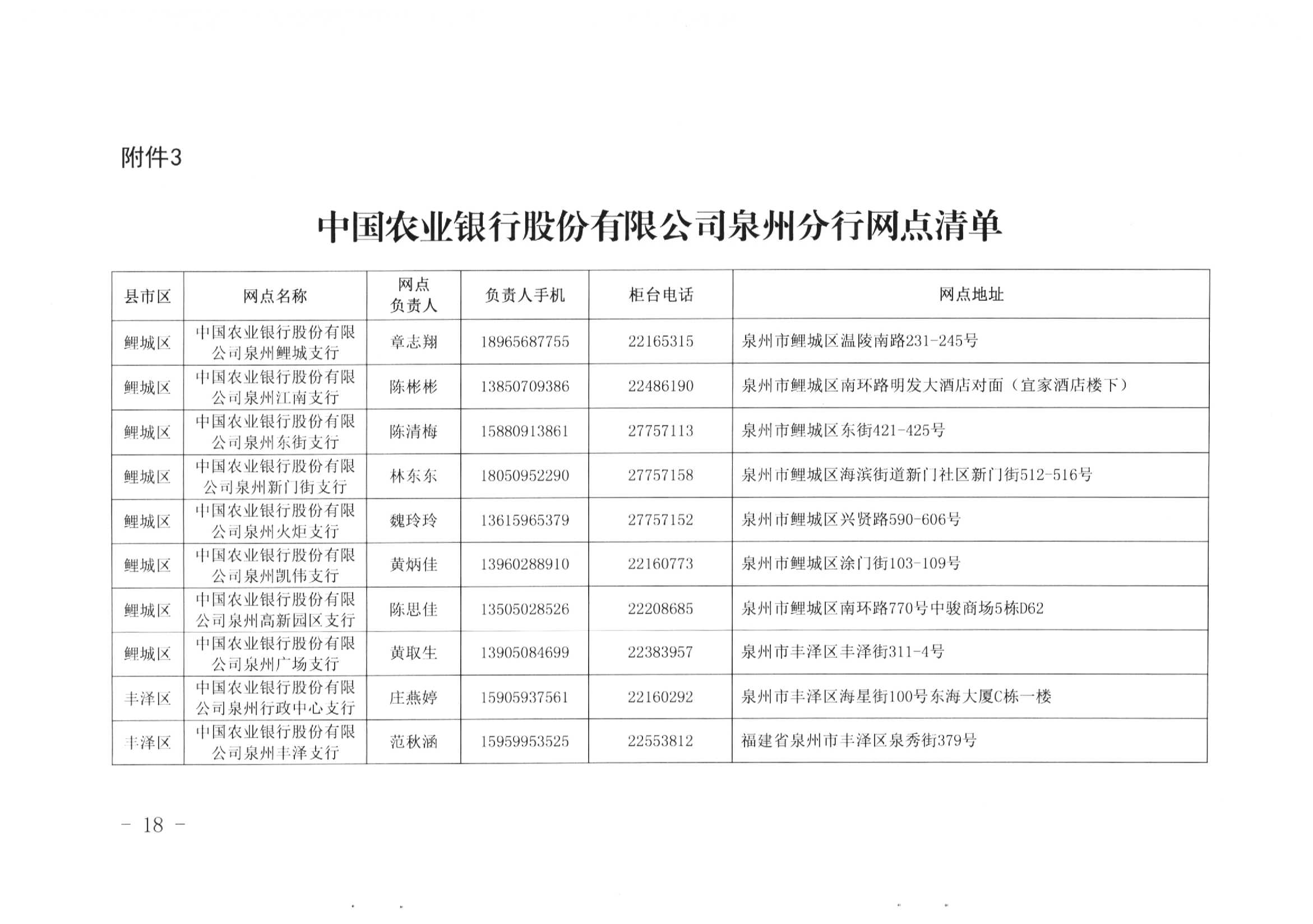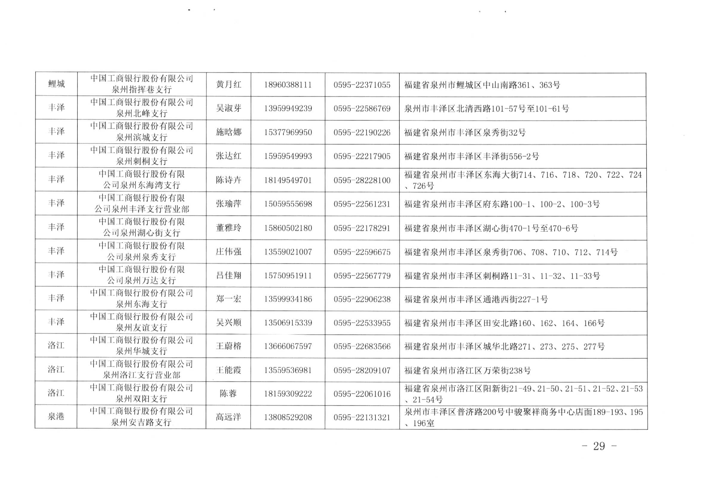 中国农业银行泉州分行、兴业银行泉州分行、中国工商银行泉州分行。