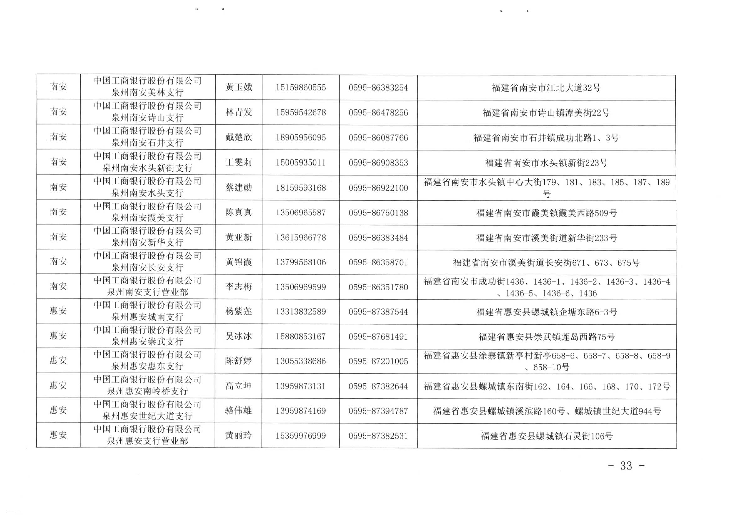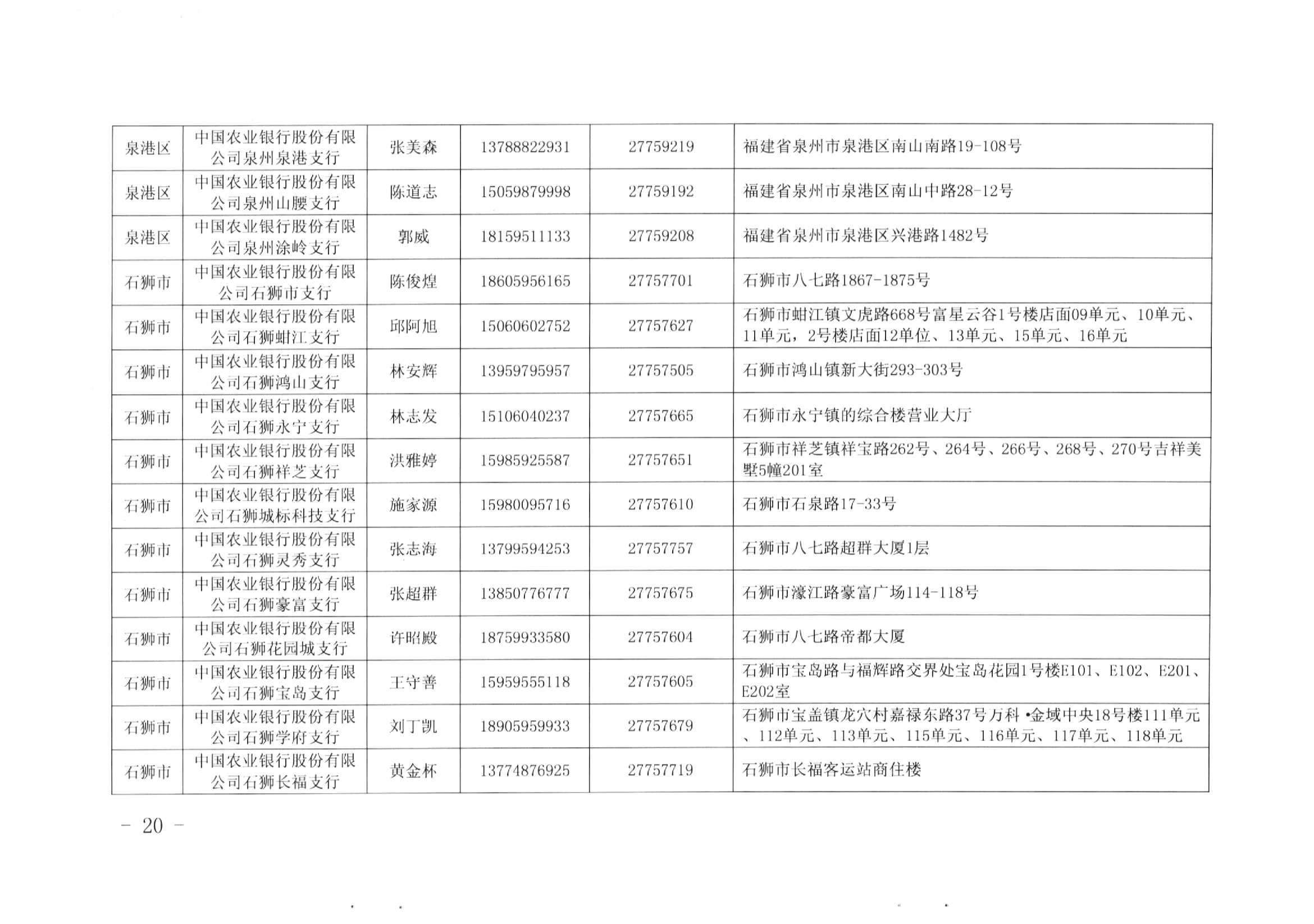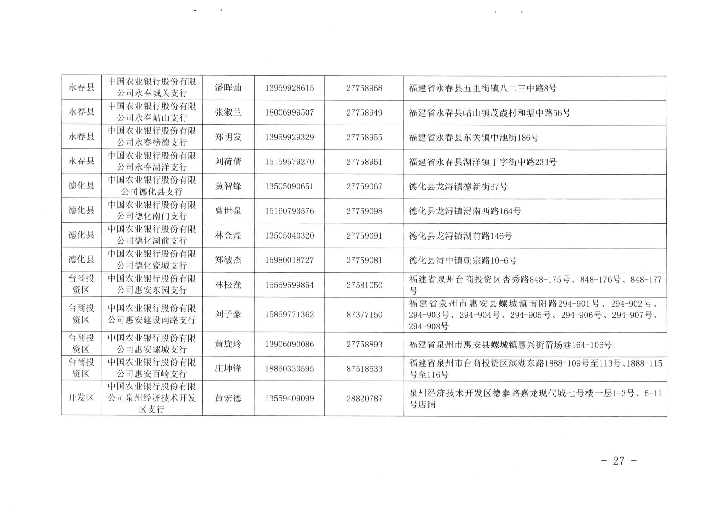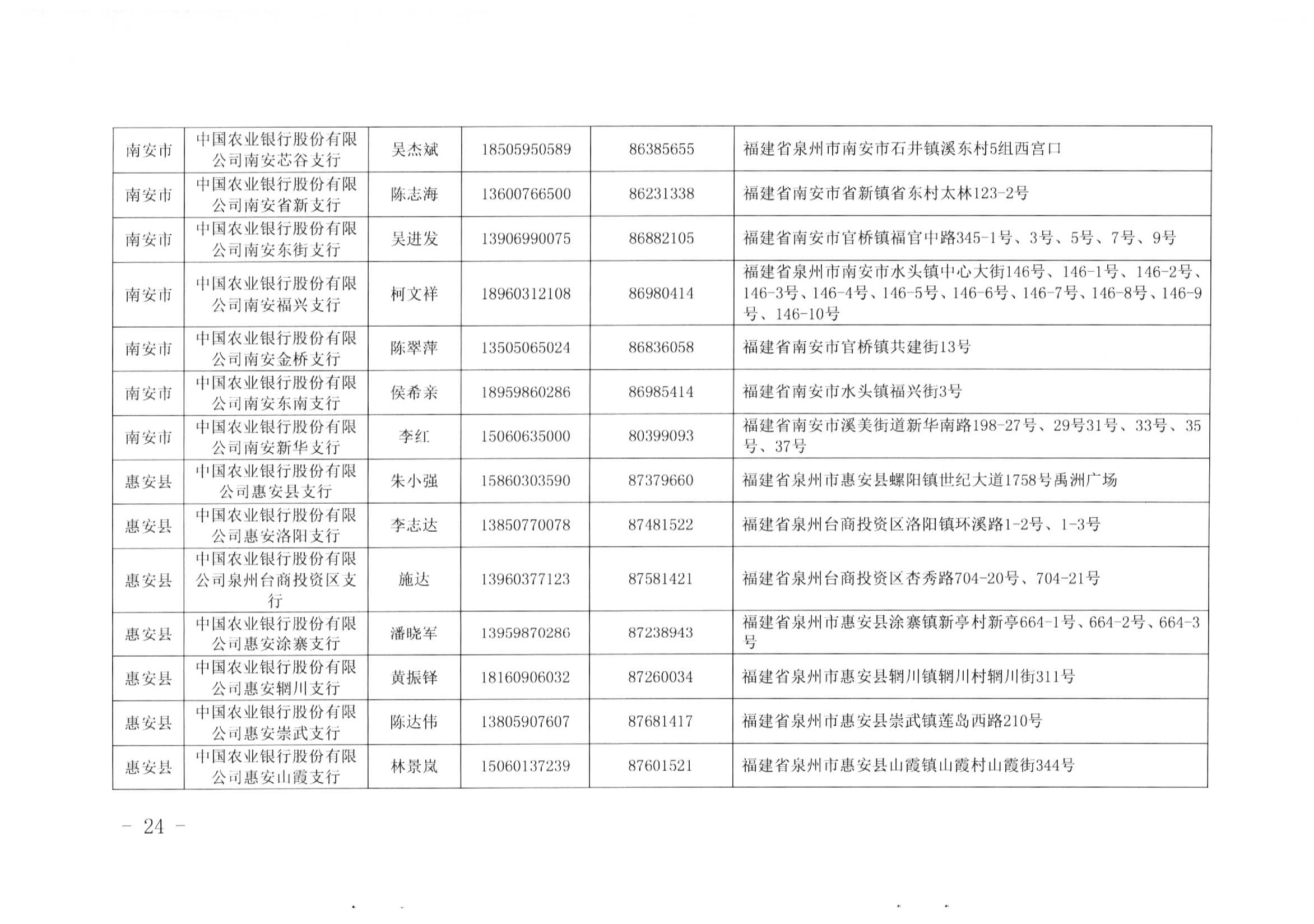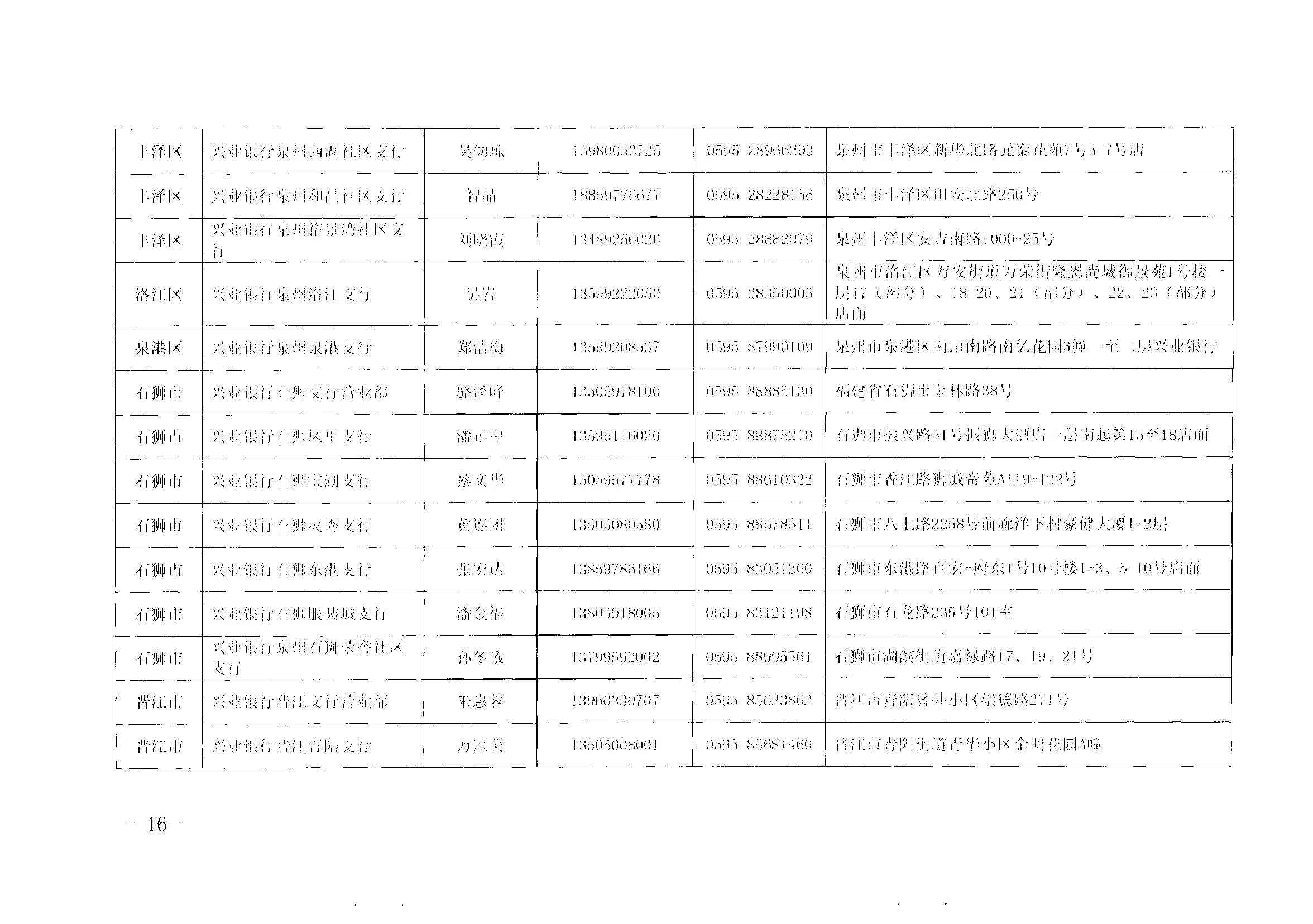 中国农业银行泉州分行、兴业银行泉州分行、中国工商银行泉州分行。