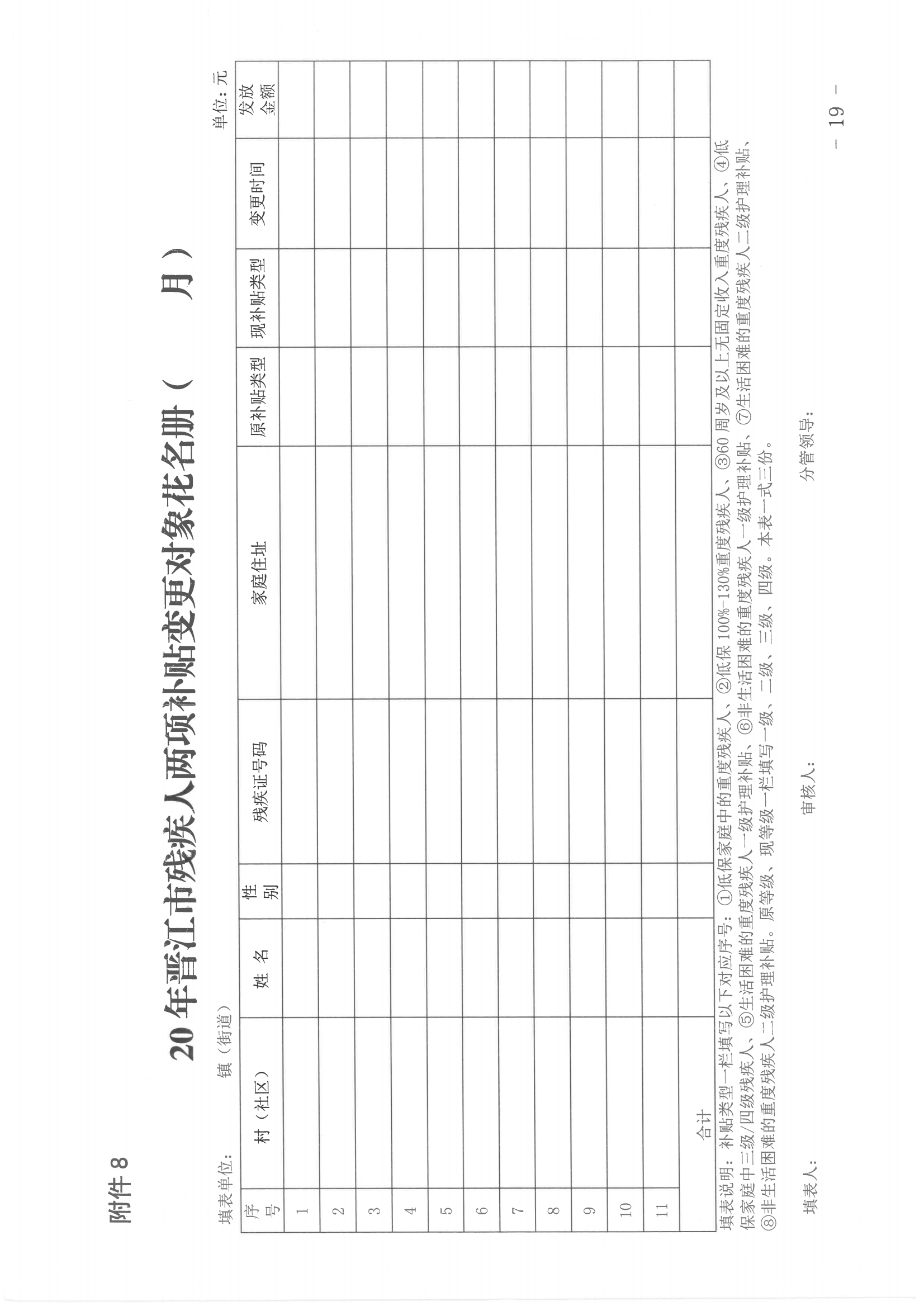 10.20 年月重度残疾人护理补贴资金拨付核对表