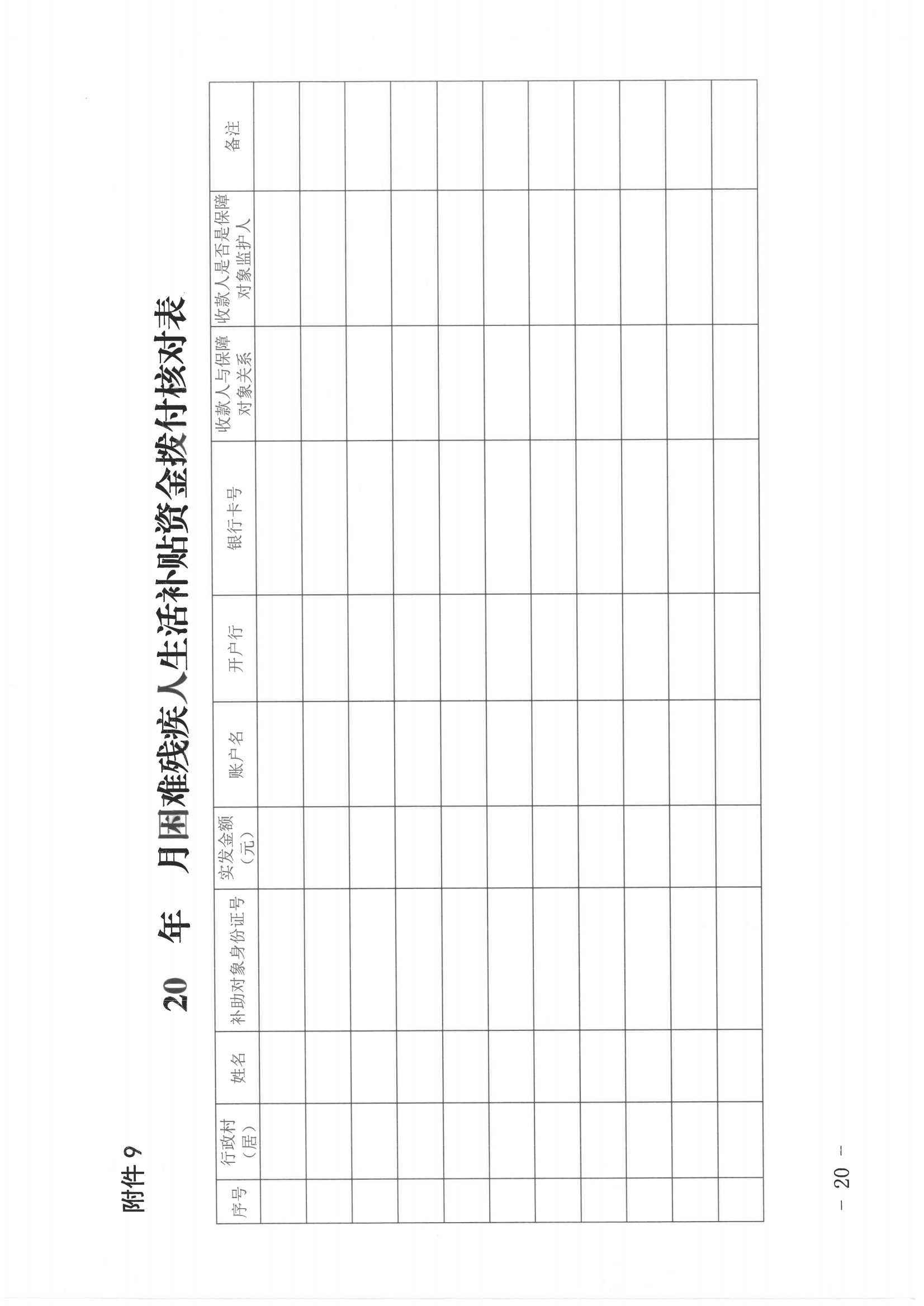9.20 年月困难残疾人生活补贴资金拨付核对表