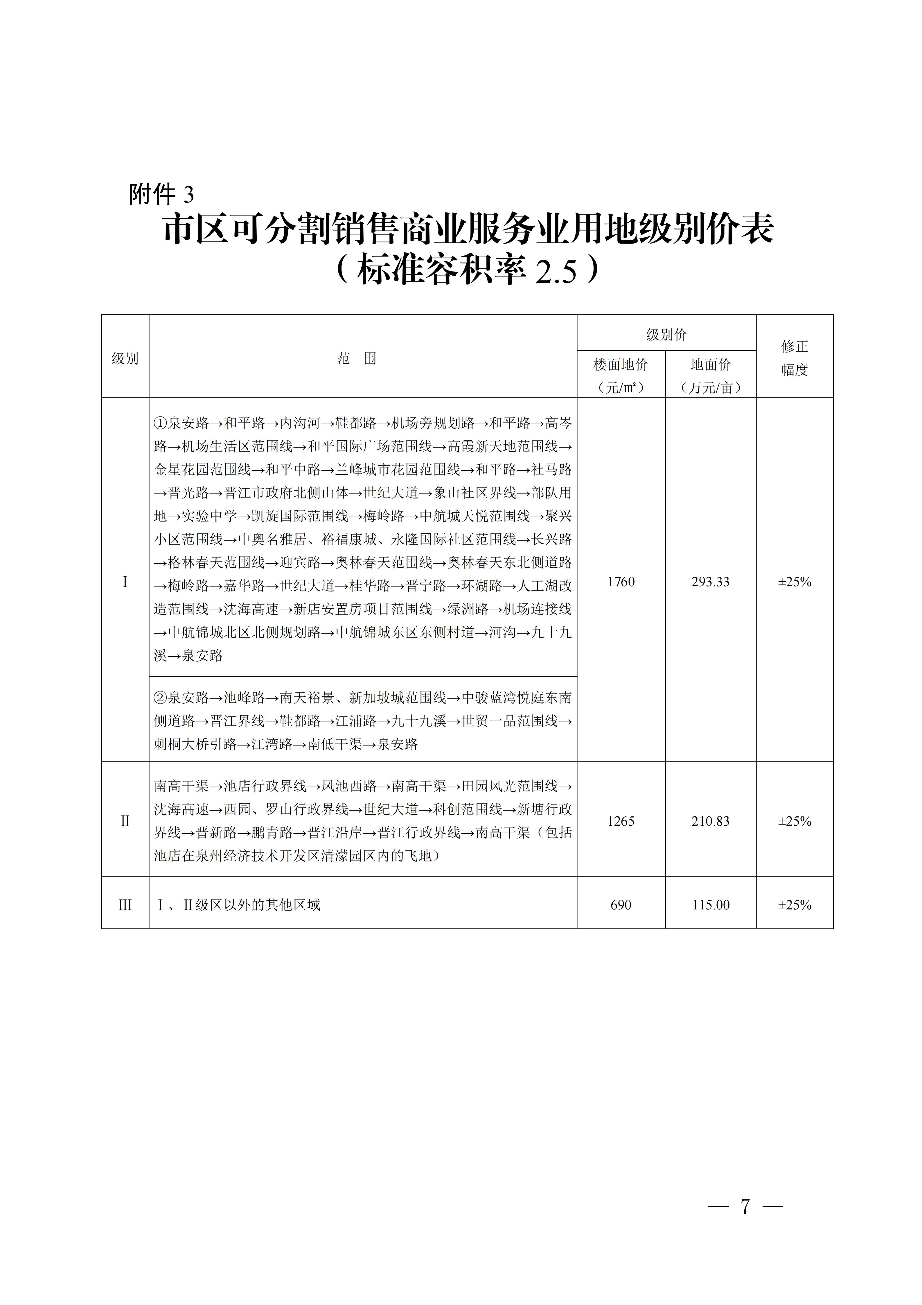 3.市区可分割销售商业服务业用地级别价表(标准容积率2.5)