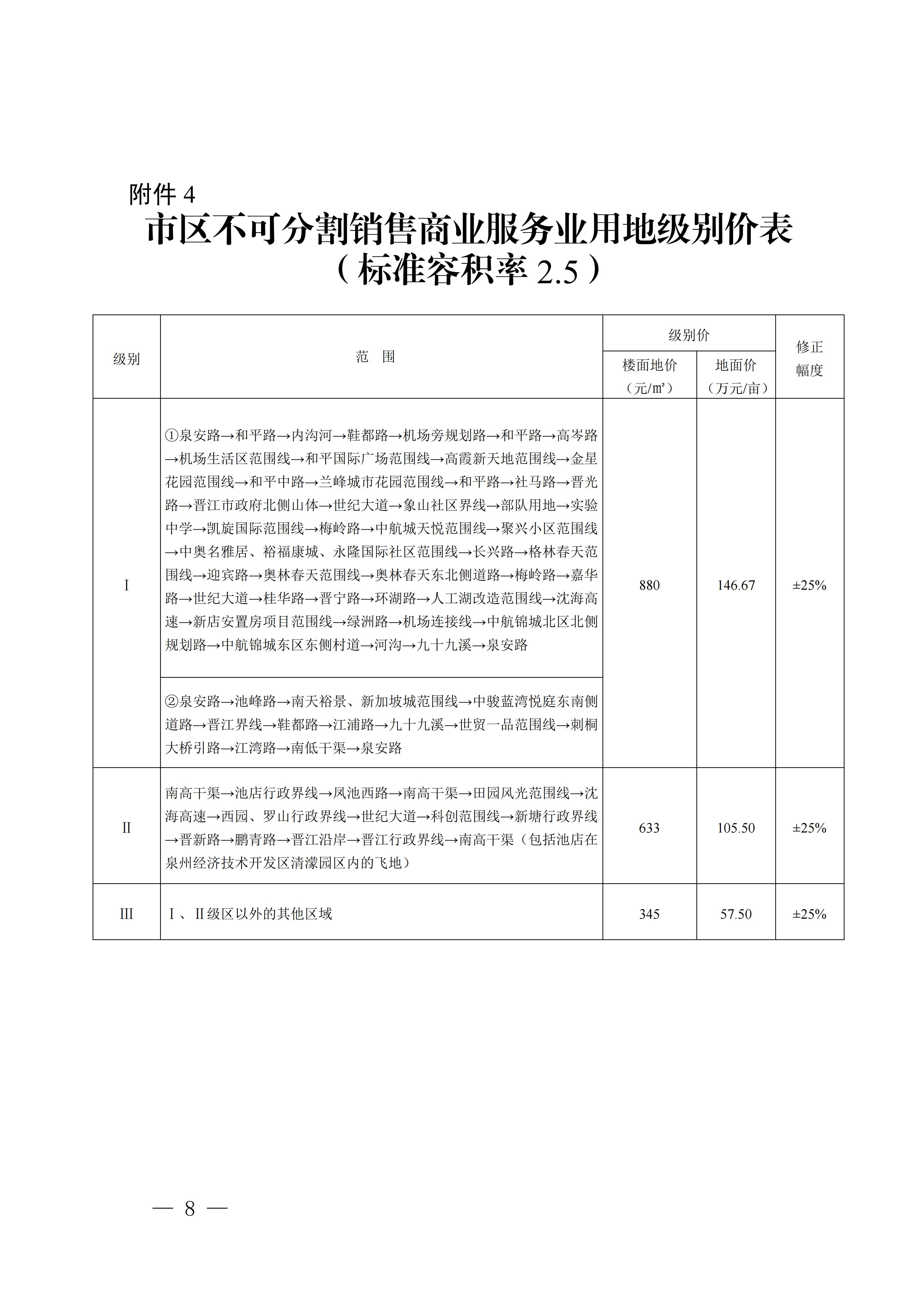 4.市区不可分割销售商业服务业用地级别价表(标准容积率2.5)