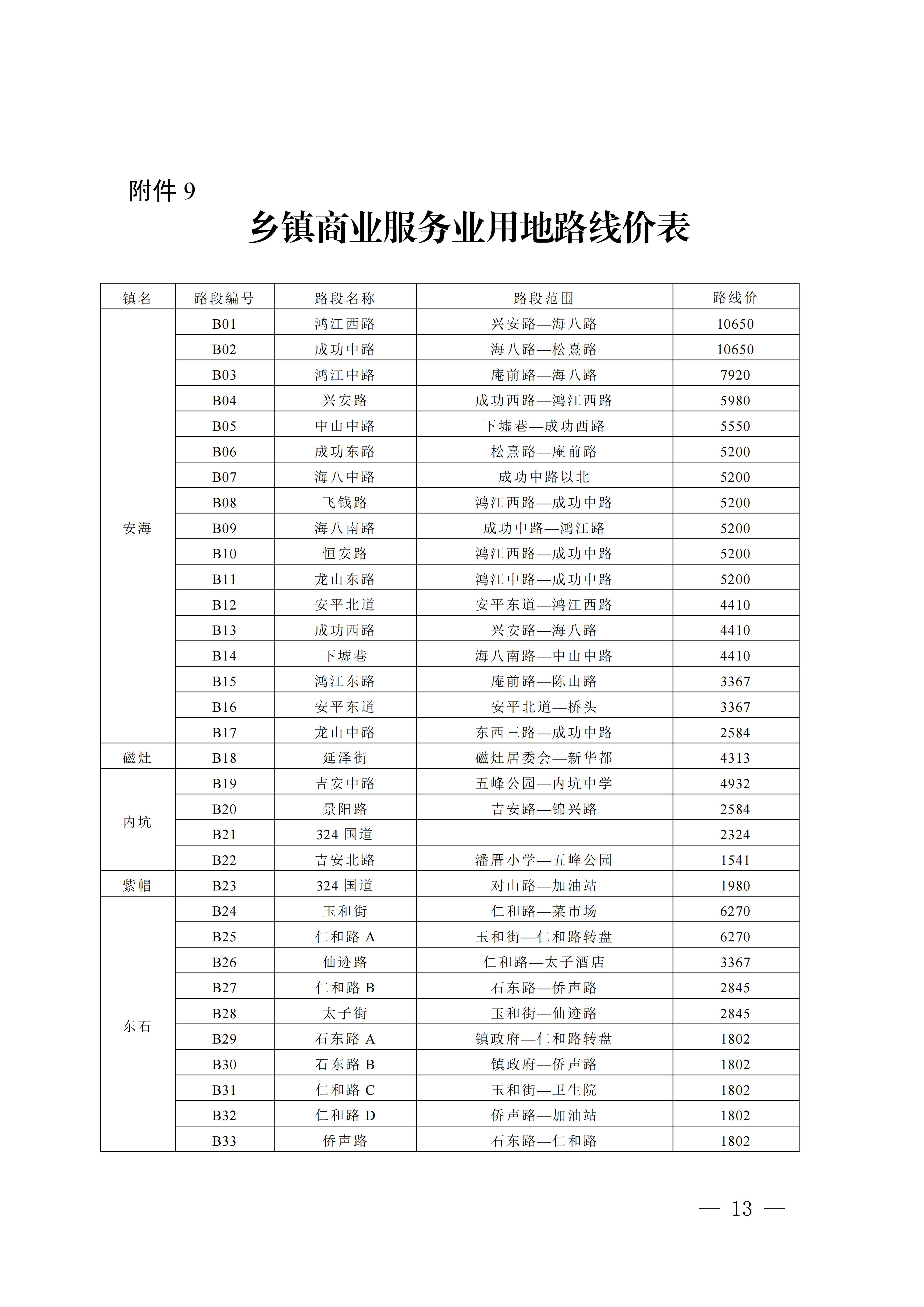 13.乡镇工矿、仓储用地级别价表(标准容积率1.0)