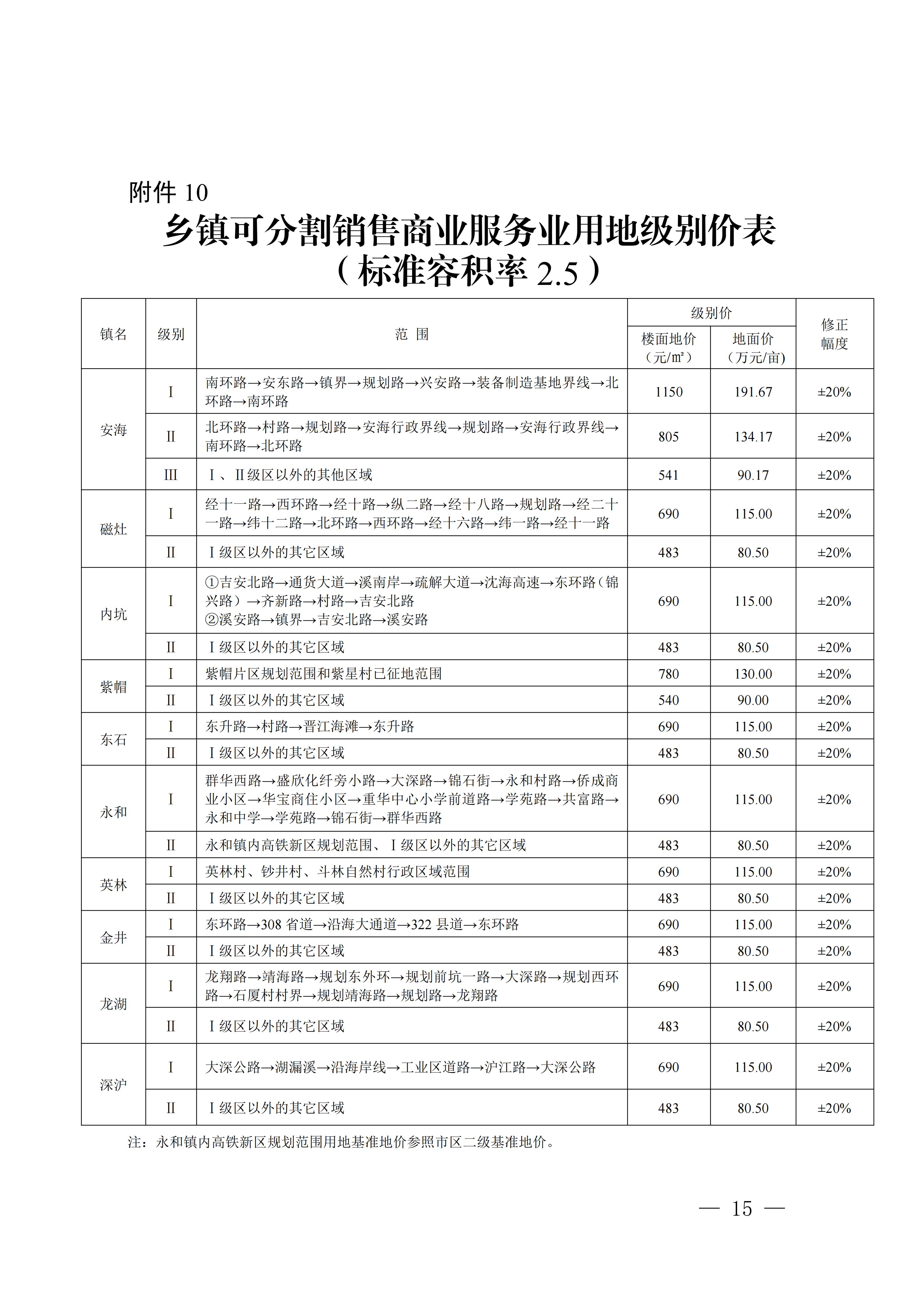 10.乡镇可分割销售商业服务业用地级别价表(标准容积率2.5)