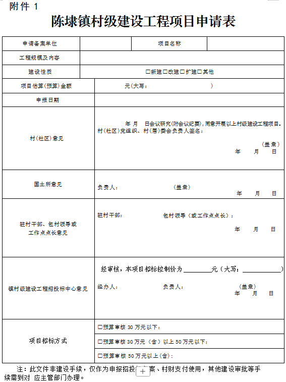 附件:1.陈埭镇村级建设工程项目申请表
