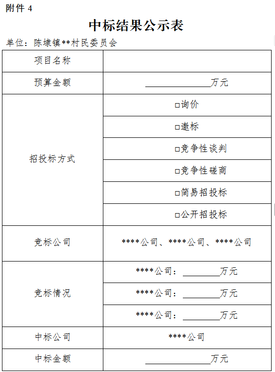 4.中标结果公示表