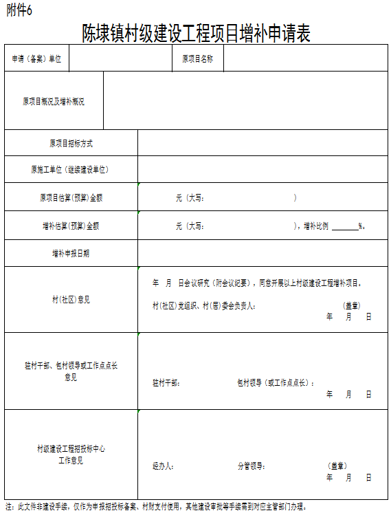 6.陈埭镇村级建设工程项目增补申请表