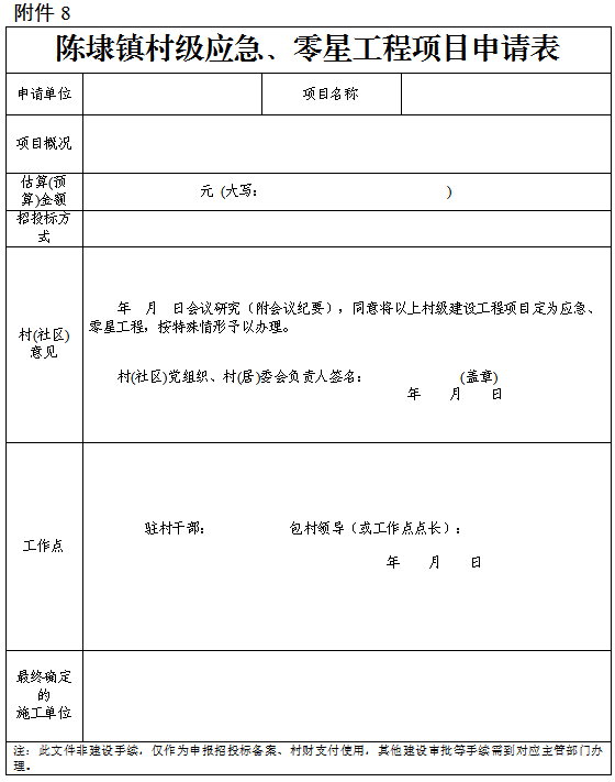 8.陈埭镇村级应急、零星工程项目申请表