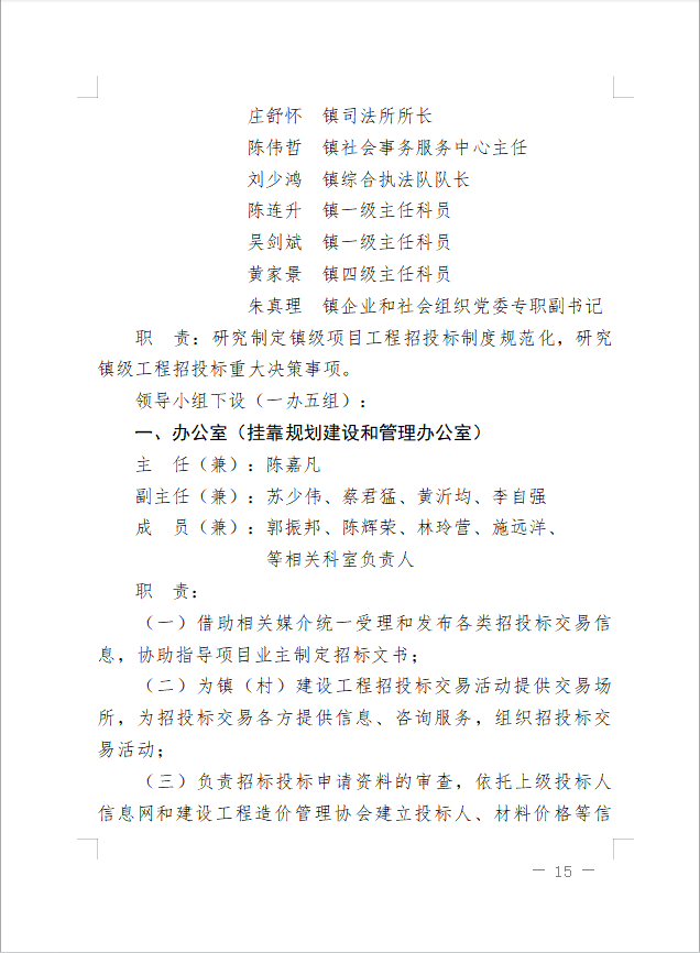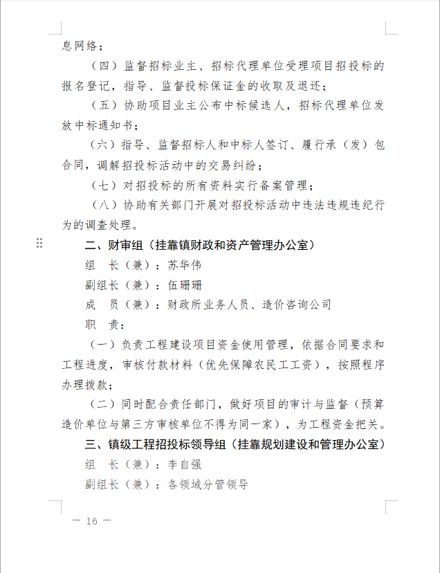 (三)镇级工程招投标领导组(挂靠在规划建设和管理办公室)
