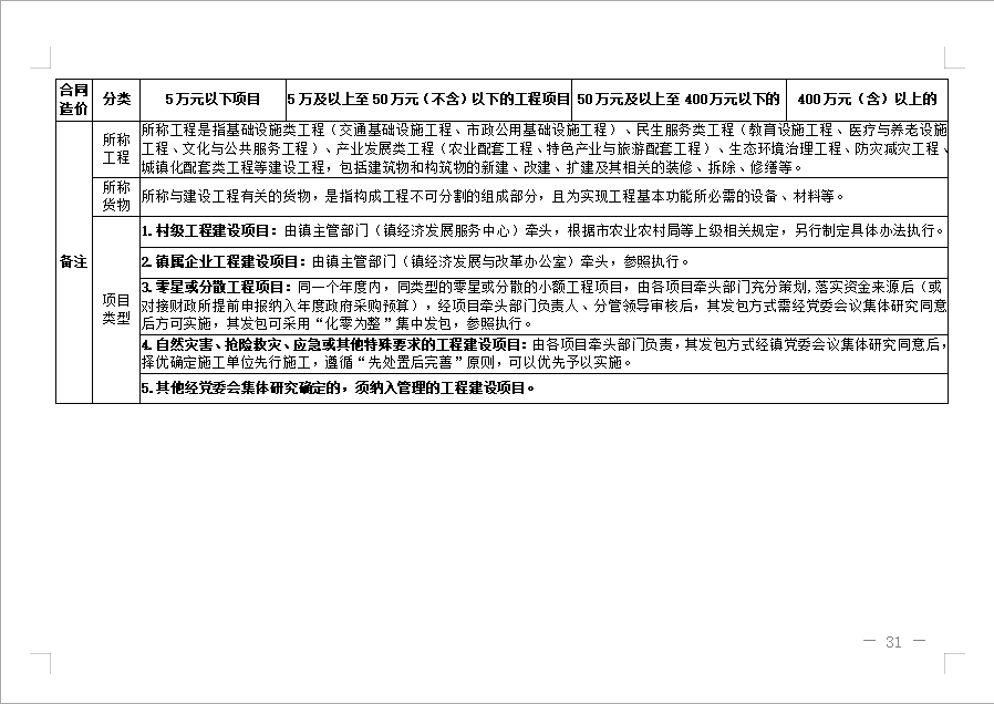 4.自然灾害、抢险救灾、应急或其他特殊要求的工程建设项目。由各项目牵头部门负责,其发包方式经镇党委会议集体研究同意后,择优确定施工单位先行施工,遵循“先处置后完善”原则,可以优先予以实施。