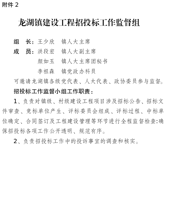 2.龙湖镇建设工程招投标工作监督组