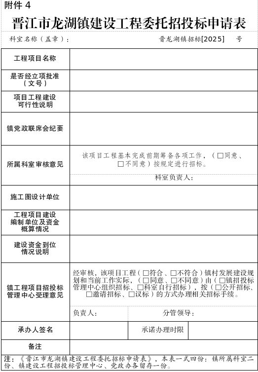 4.晋江市龙湖镇建设工程委托招标申请表