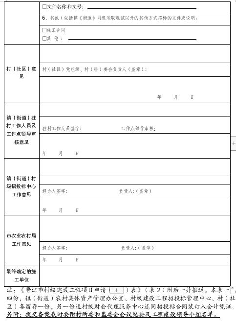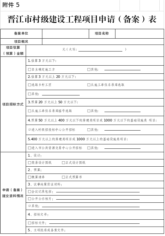 5.晋江市村级建设工程项目申请(备案)表