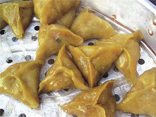 案台盘子里已有炸好的,有的形若弯月,有的似三角状,有的呈圆形。问了那小夫妻,才明白过来。