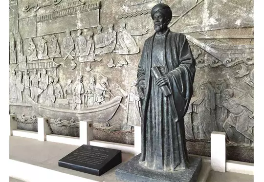 伊本·白图泰 伊本·白图泰(1303—1377年),是中世纪阿拉伯世界最负盛名的旅行家,他出生于摩洛哥的丹吉尔,1325年至1354年间先后作3次洲际旅行,行程十多万公里,足迹遍及非、亚、欧三大洲,包括中国等30多个国家和地区。1346年,他以印度苏丹使者的身份来我国广州、泉州、杭州和元大都等地游历,考察中国的民情风俗。1354年,他第三次出游回到菲斯后,向当地摩洛哥人讲述他艰险的游历生涯及异域神奇而丰富的见闻。菲斯城的苏丹艾卜·安纳尼热情地接见了他,并命王室的书记官伊本·裘泽为他笔录了全部的旅游经历和见闻,编辑成中世纪的一部历史名著《异域奇游胜记》。这部巨著被认为是研究中世纪亚、欧、非国家的历史、文化、政治、经济、社会生活和风土民俗的忠实而宝贵的历史资料。在这部游记中,泉州是他介绍的重要地方之一。