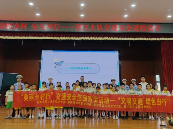为进一步提升农村地区中小学生交通安全意识,9月19日上午,公安局交警大队走进晋江市第五实验小学(岸兜校区)开展“美丽乡村行”交通安全主题宣传活动。