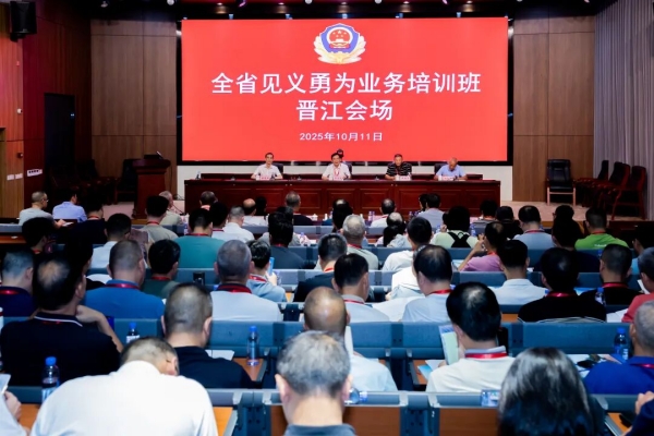 10月11日,福建省见义勇为业务培训班在晋江市设立分会场,全省见义勇为工作领域的骨干精英齐聚晋江,集中参与培训交流,晋江分享经验做法。