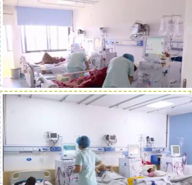 东石分院血液透析室配备符合国家标准的血液净化空间,一期开放8张床位,每个床位均配设心电监护仪,同时配备两台血滤机,六台血透机。目前已有6名病人在此进行治疗。