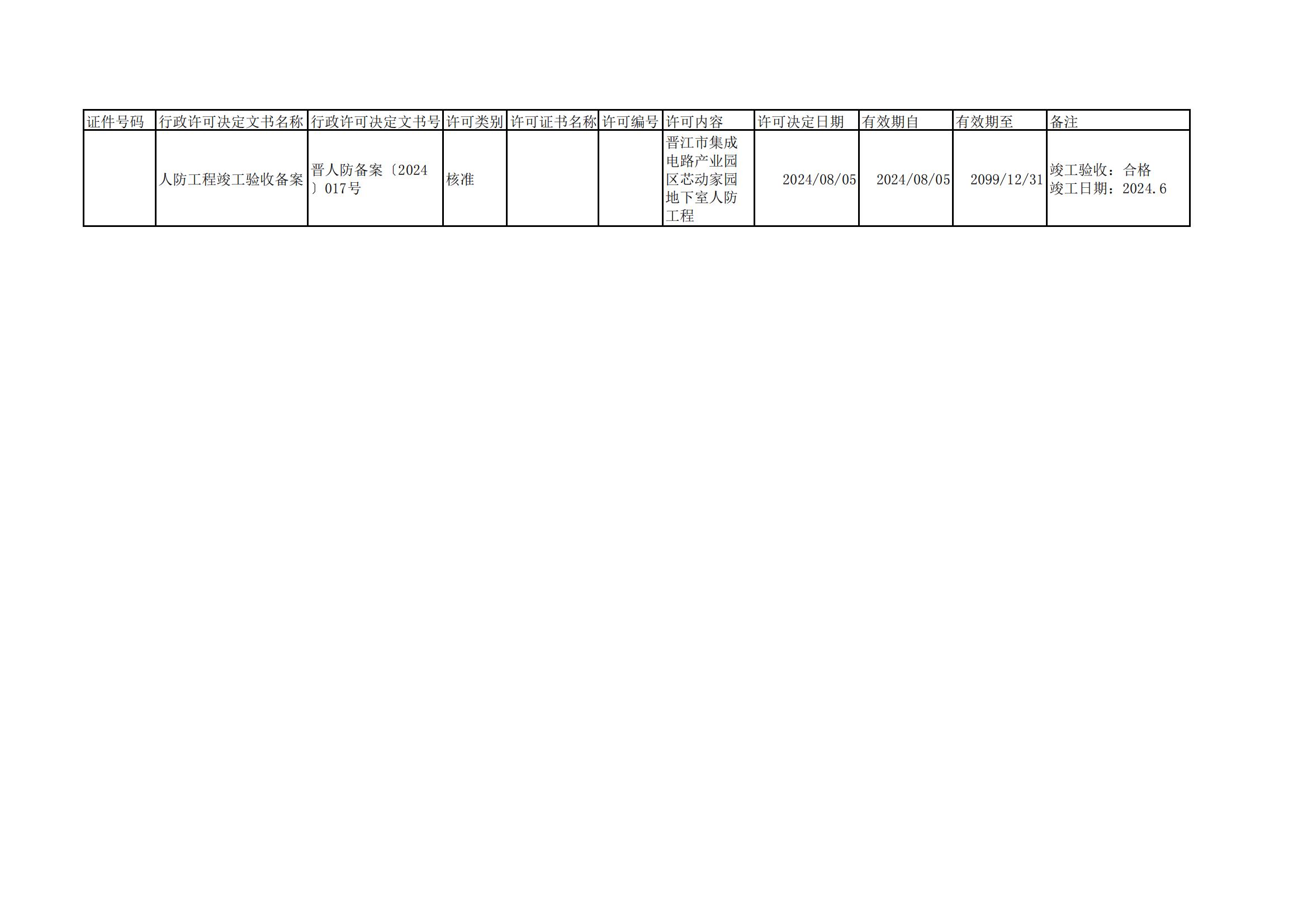 晋江人防2024年8月竣工备案信息公示