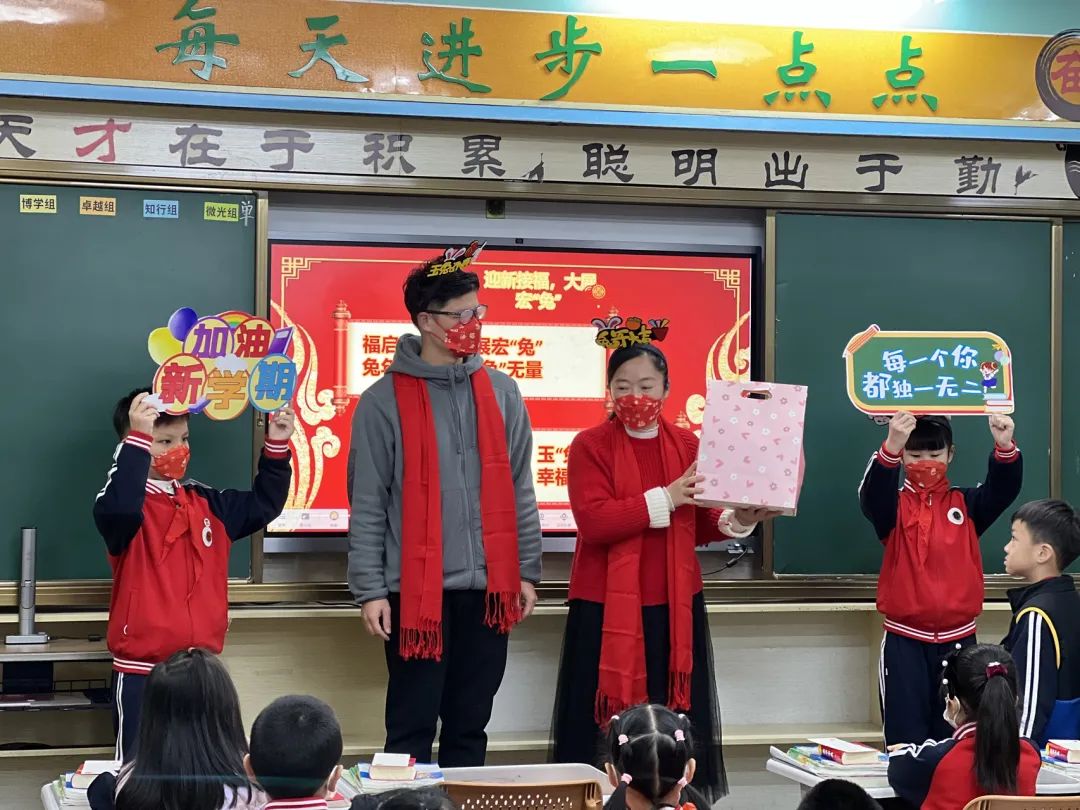 开学第一天,十小副校长王银双为学生精心准备了兔年趣味灯谜——“兔年红包(10笔字)”“管弦急奏迎癸卯(4字祝福)”等。学生们积极踊跃地参与其中,答对的同学还获得一个可爱的萌兔水杯。
