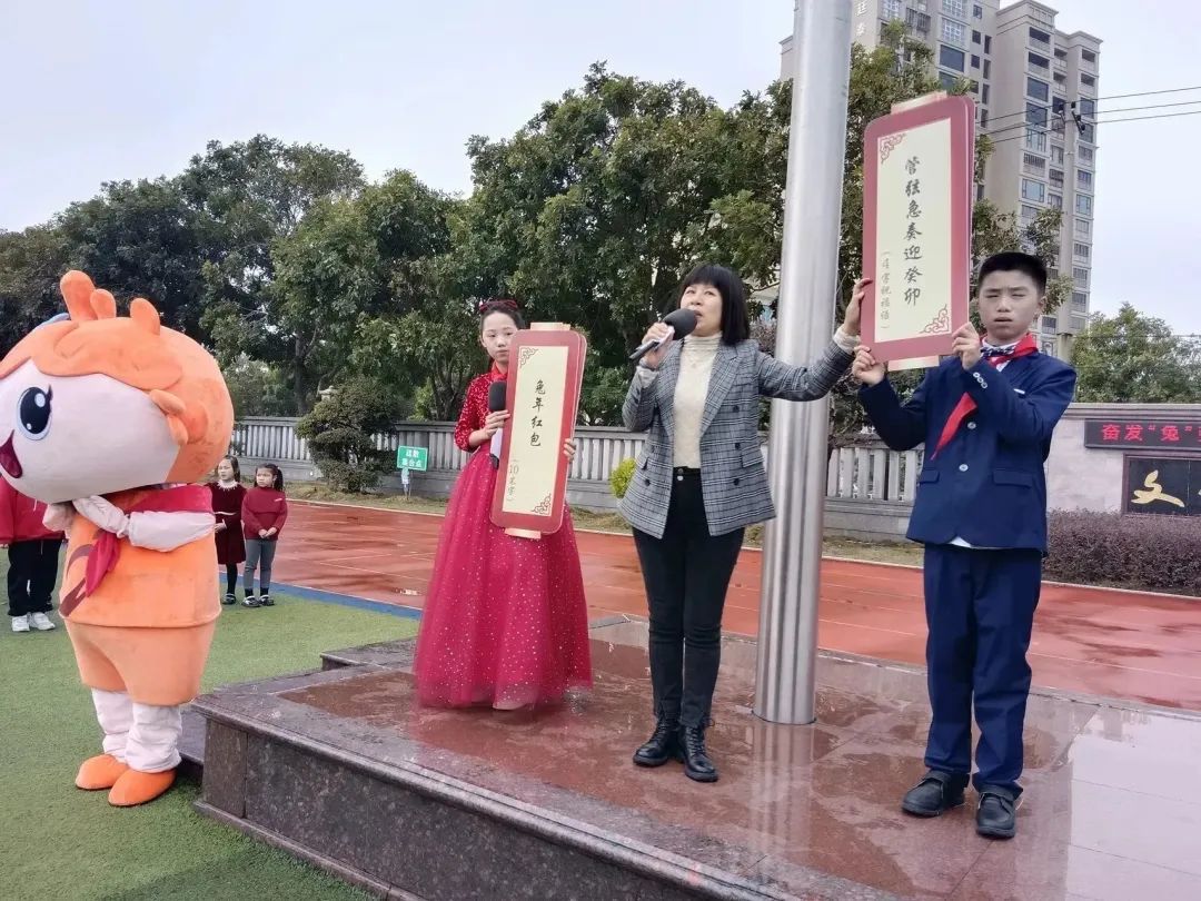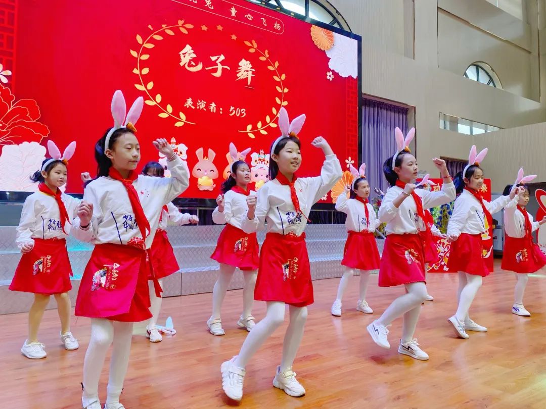 典礼上,“文化传承兔”和“勤劳能干兔”们分享了自己寒假的争章感受;“多才多艺兔”们纷纷展示的风采;可爱的“福兔”们也给大家送上兔年祝福。