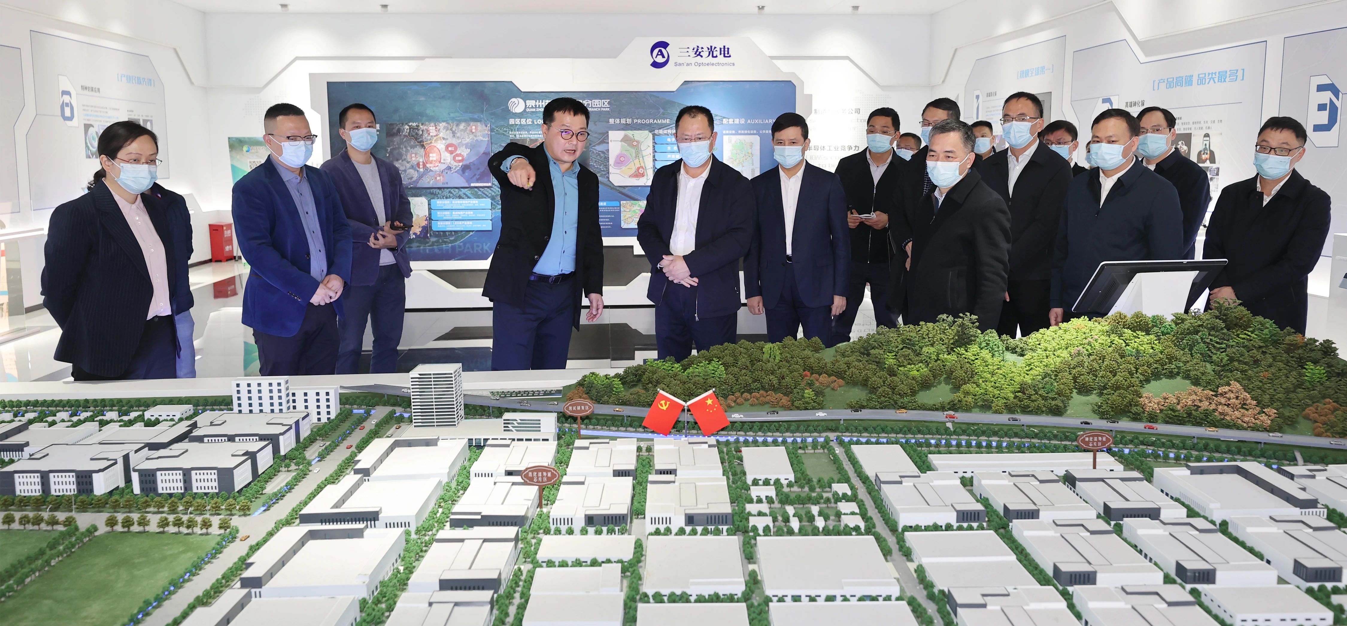 2月3日,泉州市委书记张毅恭(左五)在南安市调研三安高端半导体系列项目。(陈起拓摄)