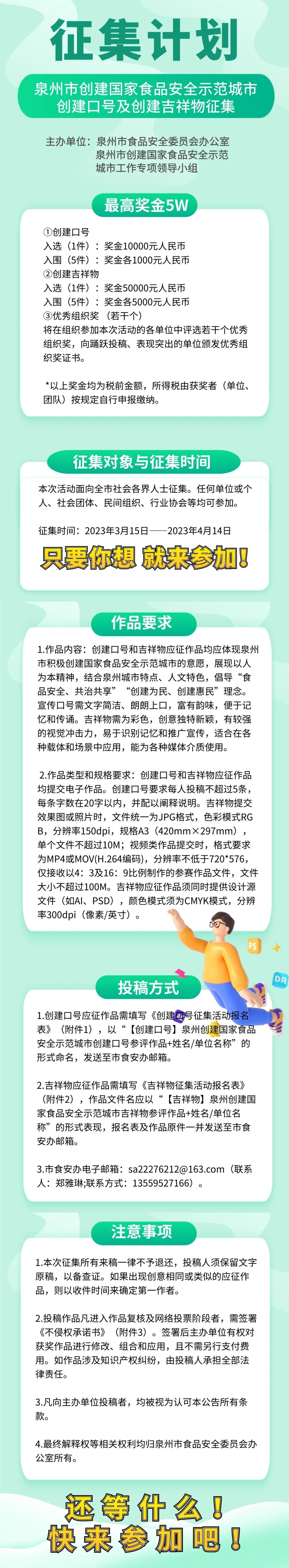 泉州市创建国家食品安全示范城市创建口号及创建吉祥物征集