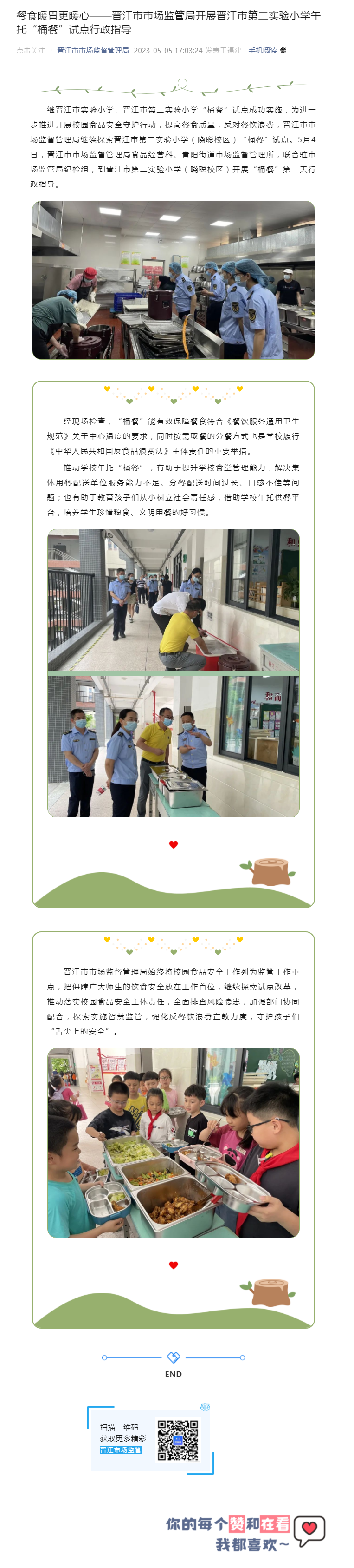 【消费警示】餐食暖胃更暖心——晋江市市场监管局开展晋江市第二实验小学午托“桶餐”试点行政指导