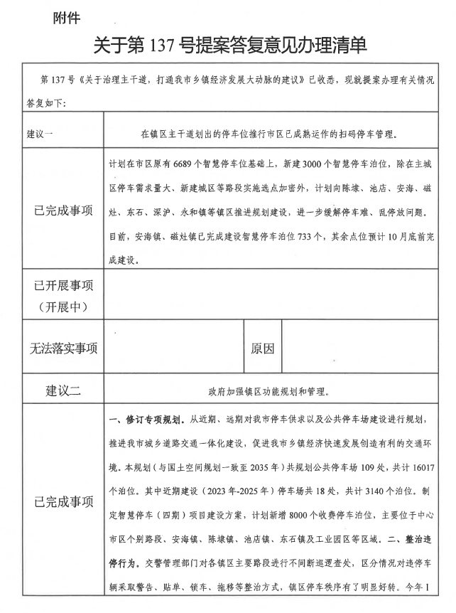 抄送:市政府分管领导,市政协提案委、市政府督查室,交警大队。