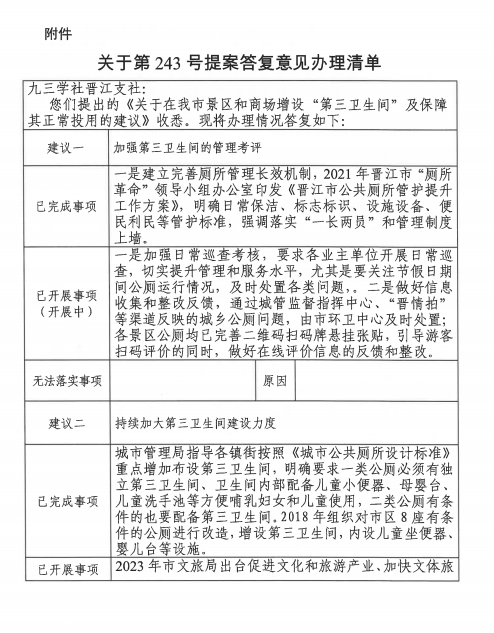 附件:关于第243号提案答复意见办理清单