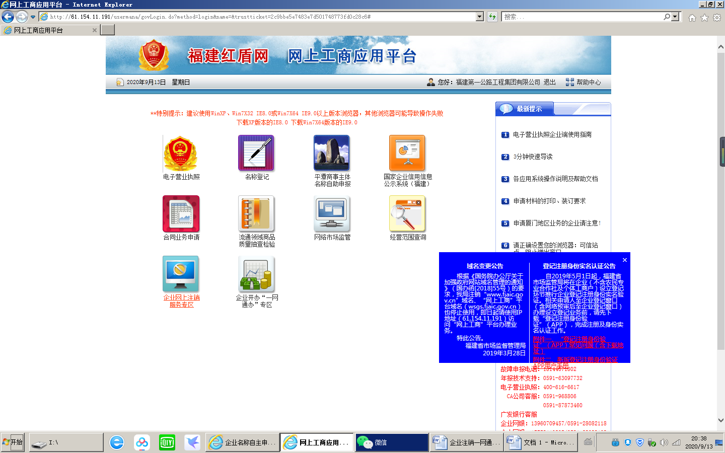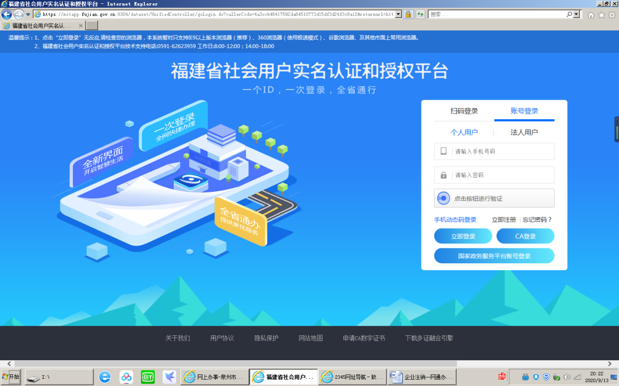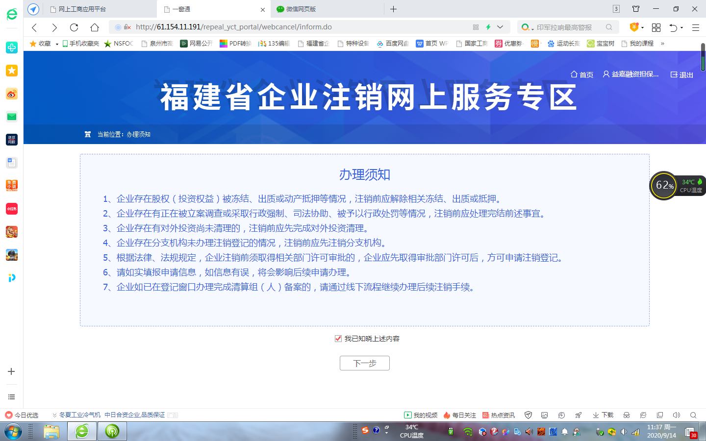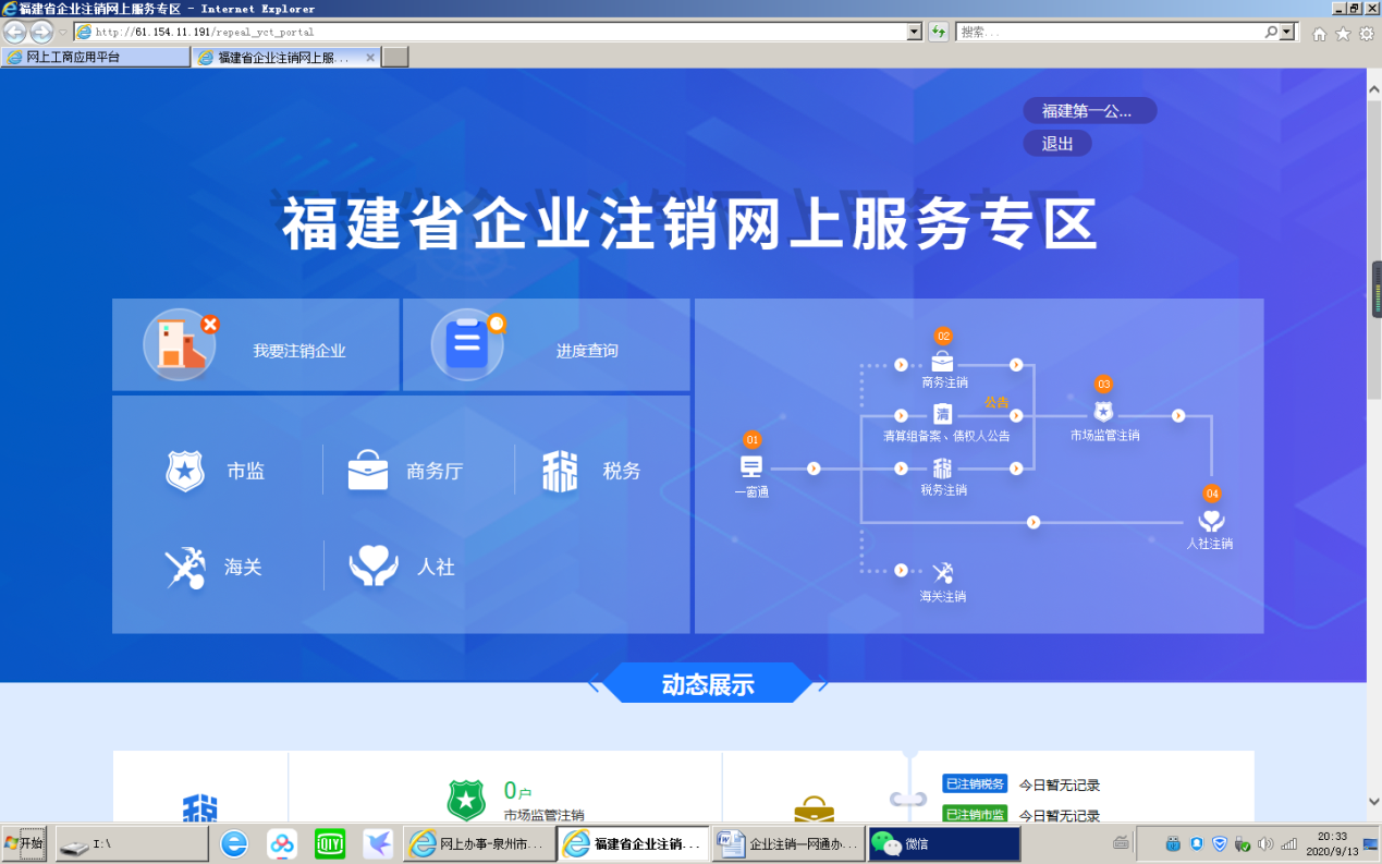 1.登录福建省企业注销网上服务专区(网址http://61.154.11.191/repeal_yct_portal),先行进行身份认证。