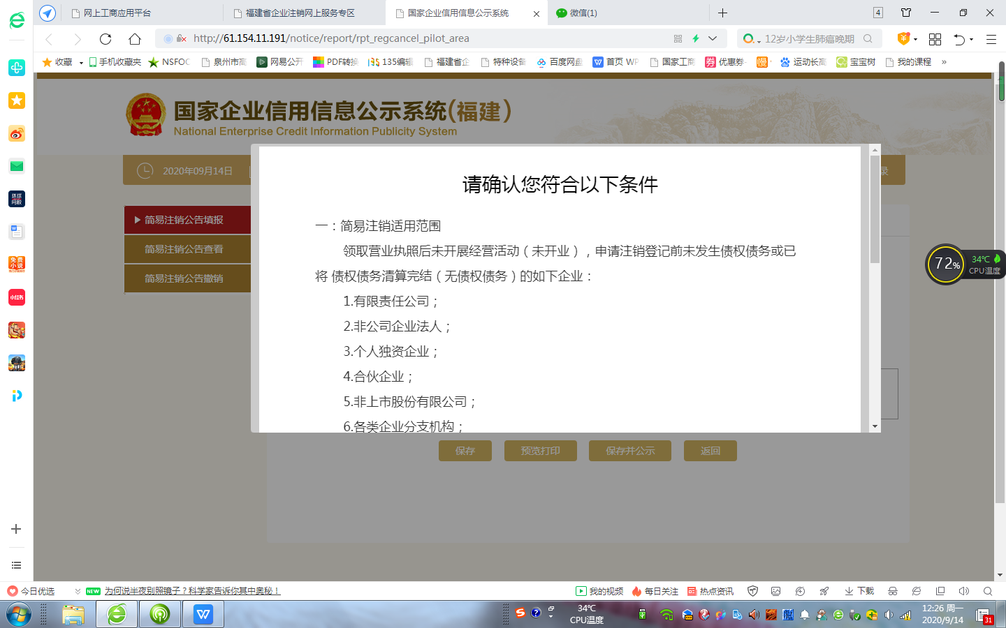 8.系统跳转到“国家企业信用信息公示系统(福建)”。