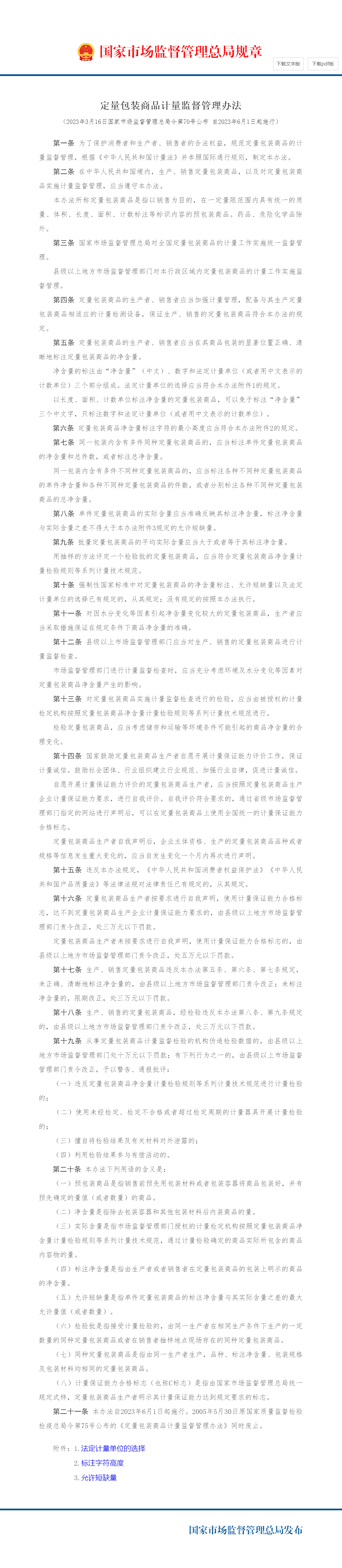 定量包装商品计量监督管理办法