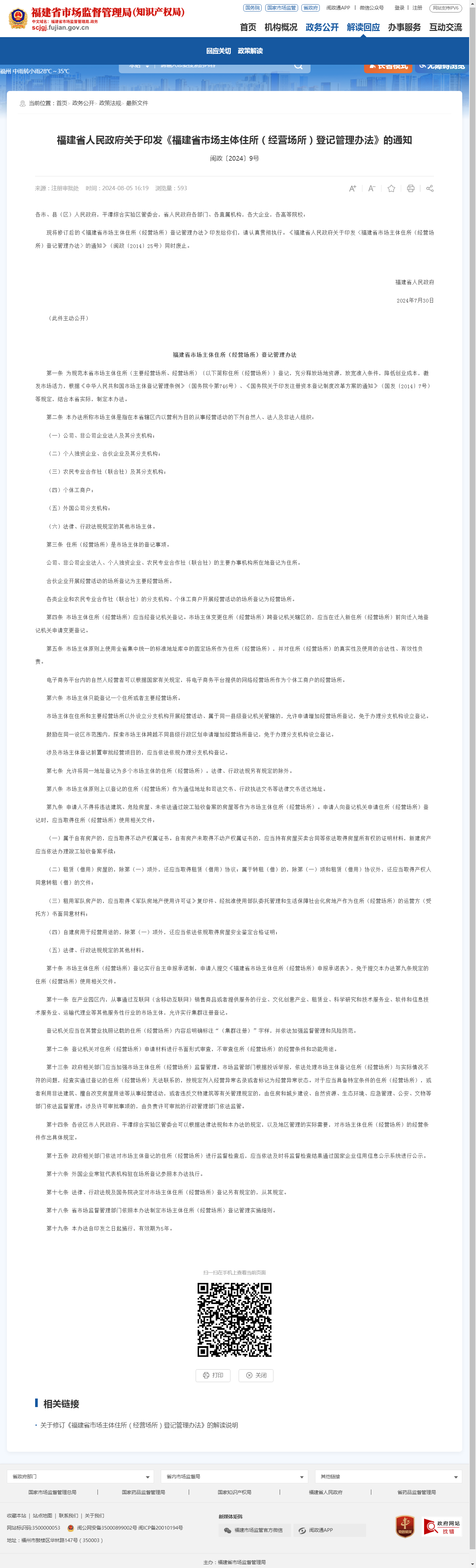 福建省人民政府关于印发《福建省市场主体住所(经营场所)登记管理办法》的通知(闽政〔2024〕9号)