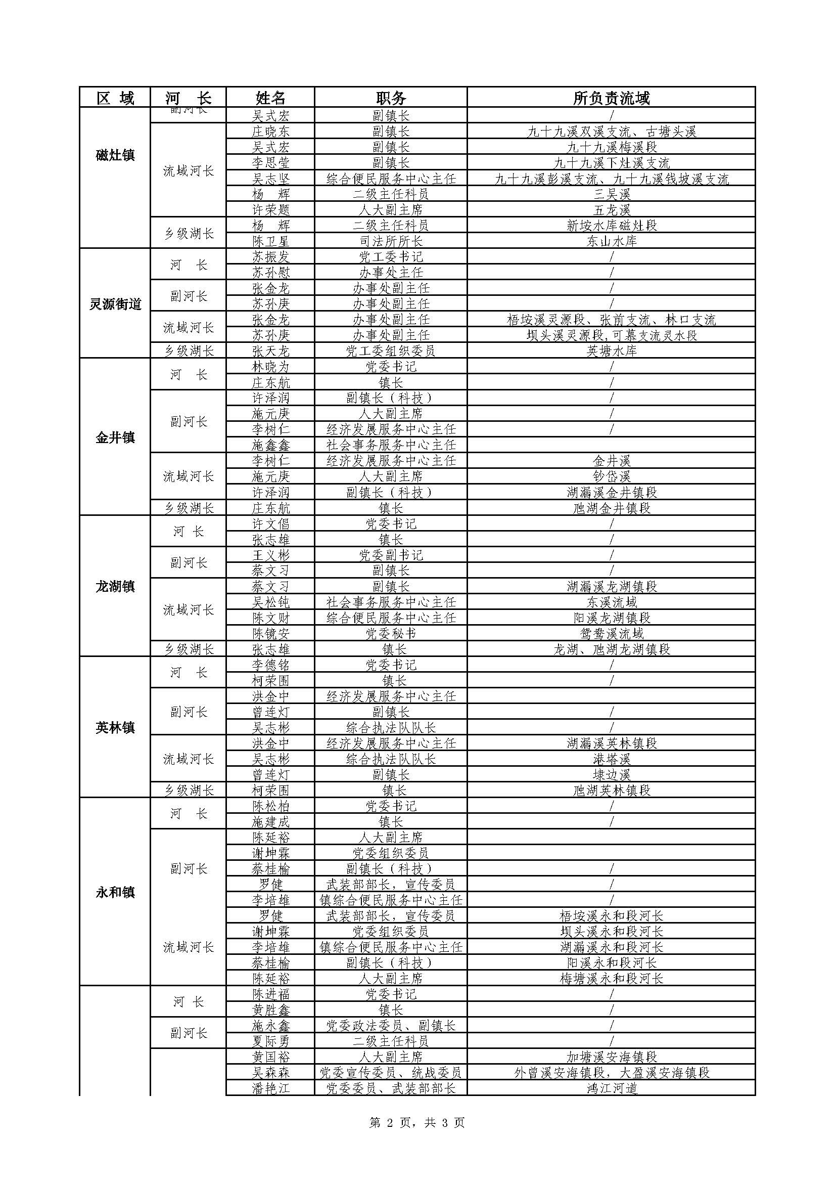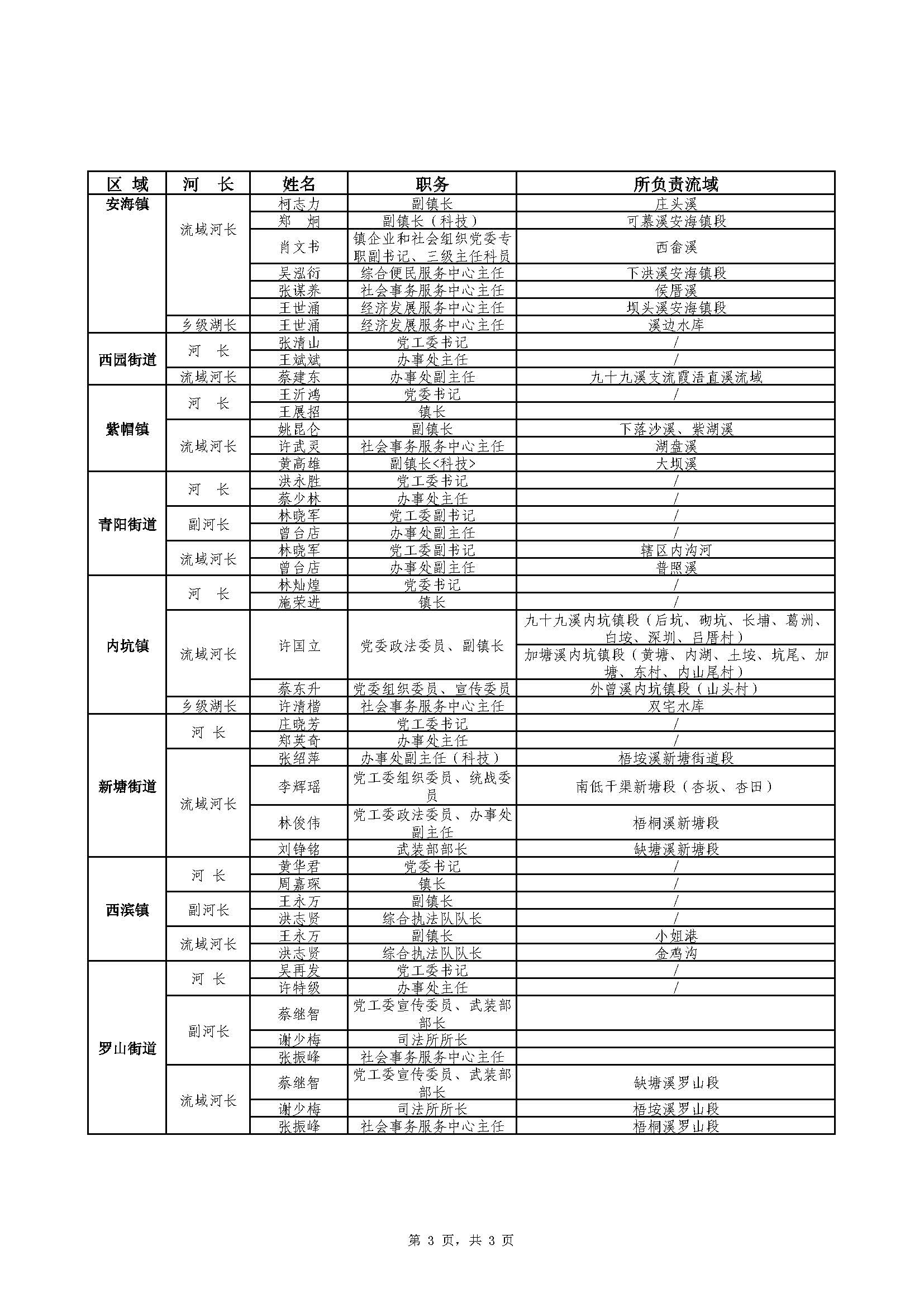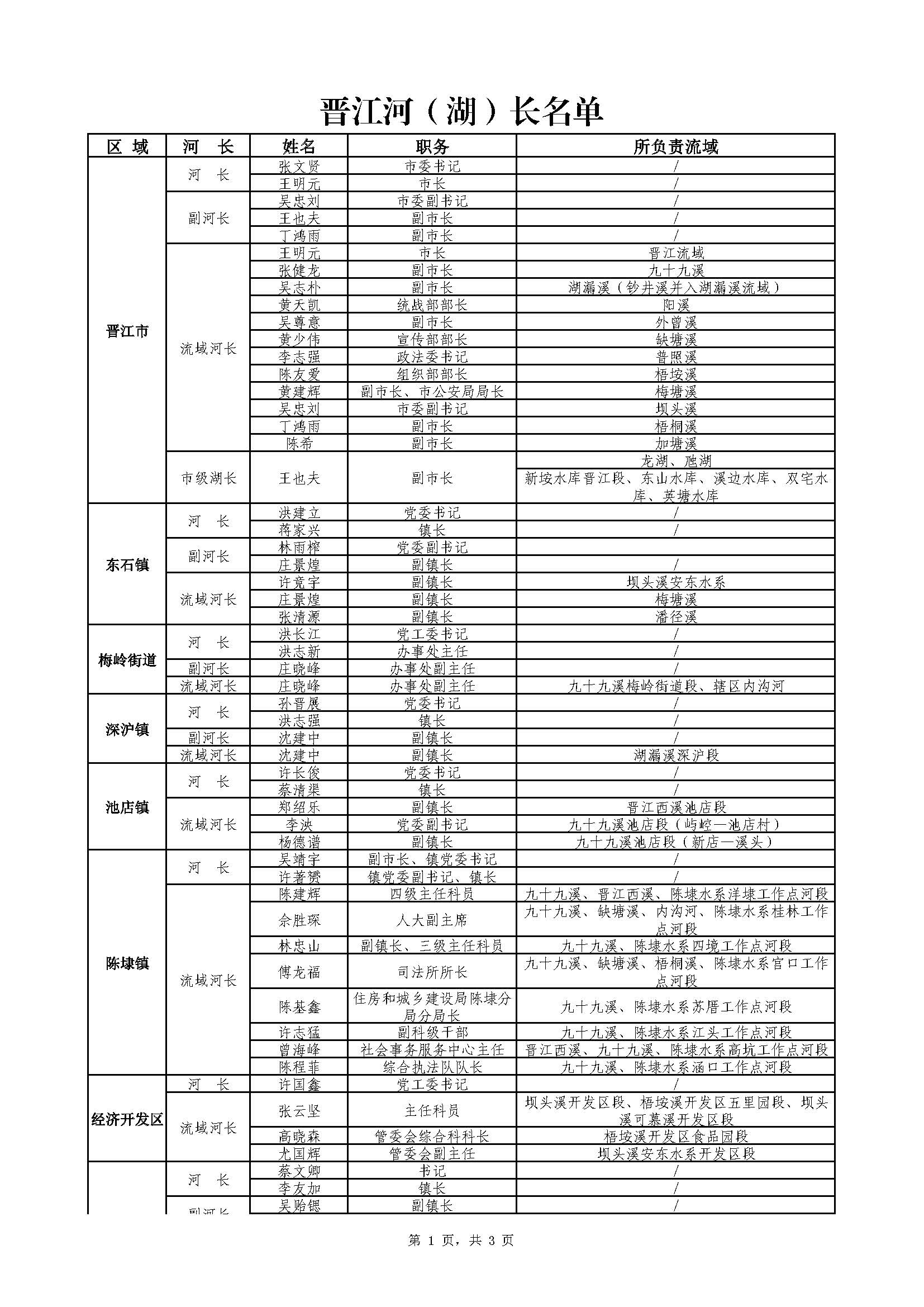 晋江河(湖)长名单(2023年6月更新)