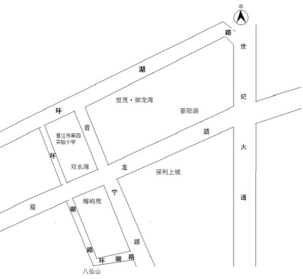 一、环湖路:东起世纪大道,途经世茂·御龙湾小区、晋江市第四实验小学、双水湾小区、梅屿苑小区、八仙山,西至晋宁路。全长3400米,宽10米。