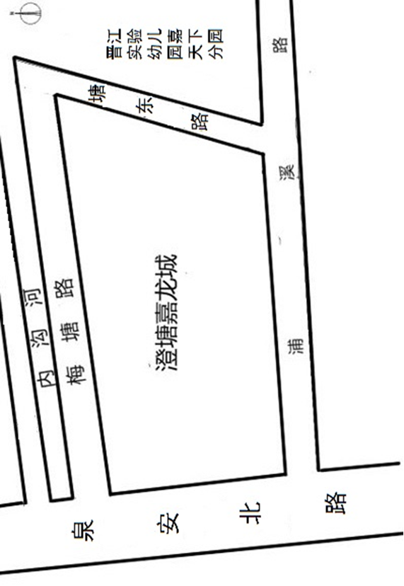 七、梅塘路:西起泉安北路,途经澄塘嘉龙城,东至晋江实验幼儿园嘉天下分园。全长330米,宽5米。