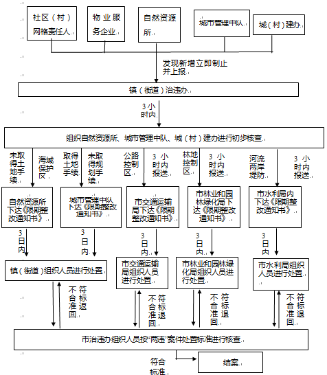 备注: 1.违建类型:①一般违建;②未按审批建设的危房翻建(即超层或超面积建设);③未按审批建设的农村宅基地建设(即超层或超面积建设);④小区违建;⑤镇(街 道)签批同意建设(应具有单位公章并明确建设层数和占地面积);⑥商业项目(查看建设工程规划许可证土地使用性质);⑦工业项目;⑧公共建设项目;⑨其 他未按审批建设的建筑;⑩生态流域周边违章建筑(若选择⑩的话,请在备注栏里备注下哪条流域) 2.建设类型:①新建(新占地建设)、②改建(拆除原建筑后建设)、③扩建(原有建筑超层或超面积建设)。 3.结构质式:①框架;②砖混;③临时搭盖。 4.报送时间:①每天下午报送当日违法建设巡查报告登记表(简称“报表”);②每月5日前报送本月的报表;③每年元月5日前报送上一年度报表。 |