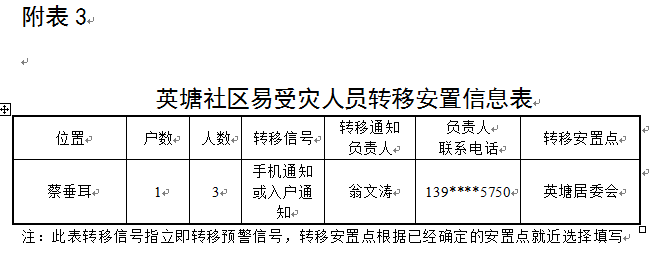 附表3:英塘社区易受灾人员转移安置信息表