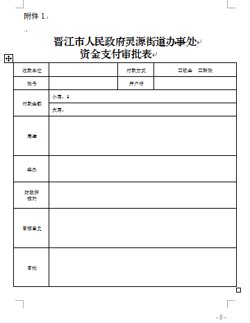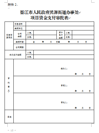 附件:1.晋江市人民政府灵源街道办事处资金支付审批表